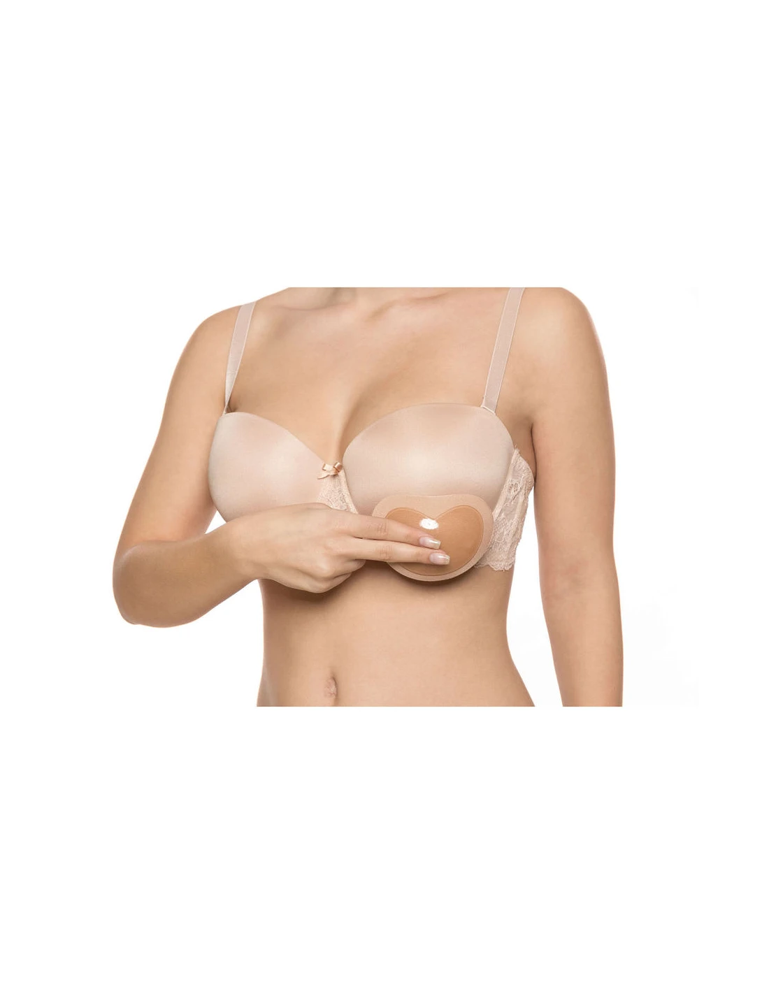 - • Presione suavemente los pads para alisar y asegurar el adhesivo en el lado interno de la copa del sujetador.