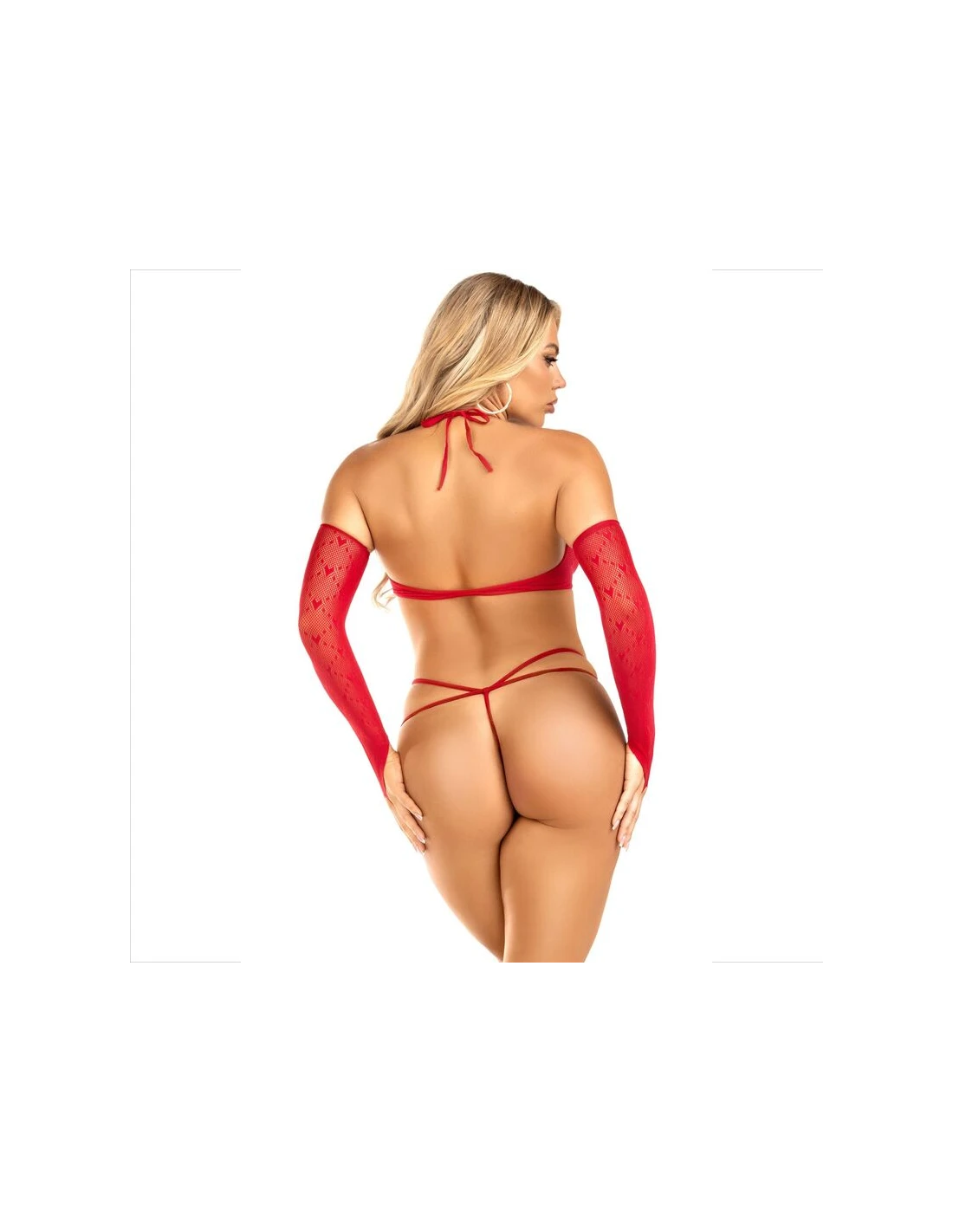 LEG AVENUE - SET 3 PIEZAS TOP + TANGA + MANGAS