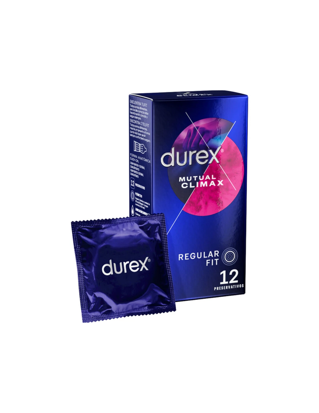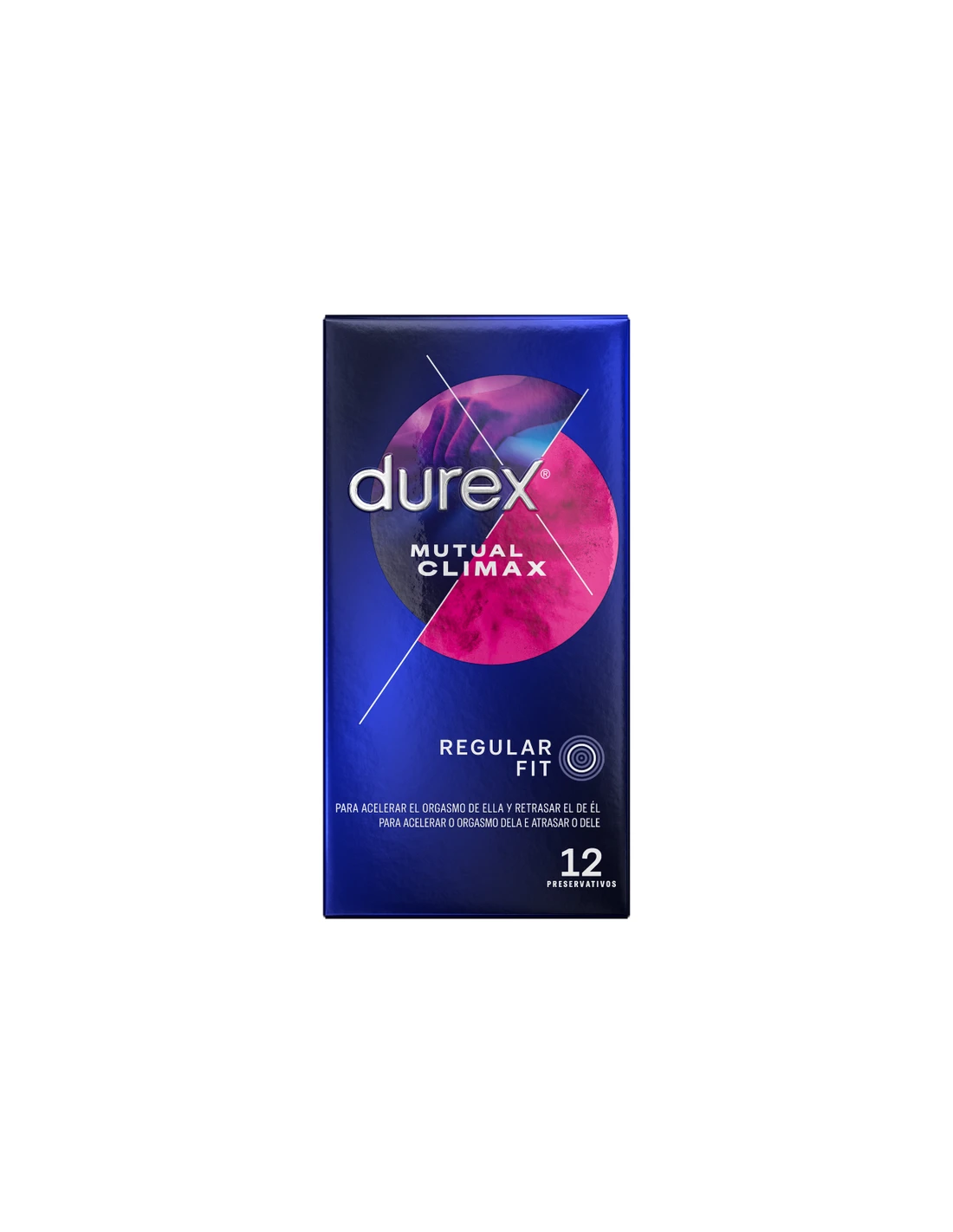 Durex Mutual Climax son preservativos diseñados con puntos y estrías para acelerar el clímax de ella y con lubricante Performa que contiene un 5% de benzocaína para retrasar el de él.