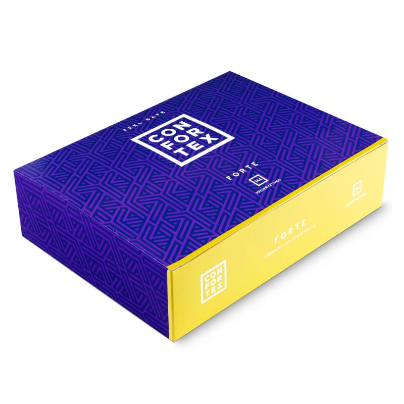 Los inconfundibles diseños junto a su atrevida combinación de colores hacen de CONFORTEX FORTE un producto fácil de identificar con el que experimentarás un sexo seguro más divertido.