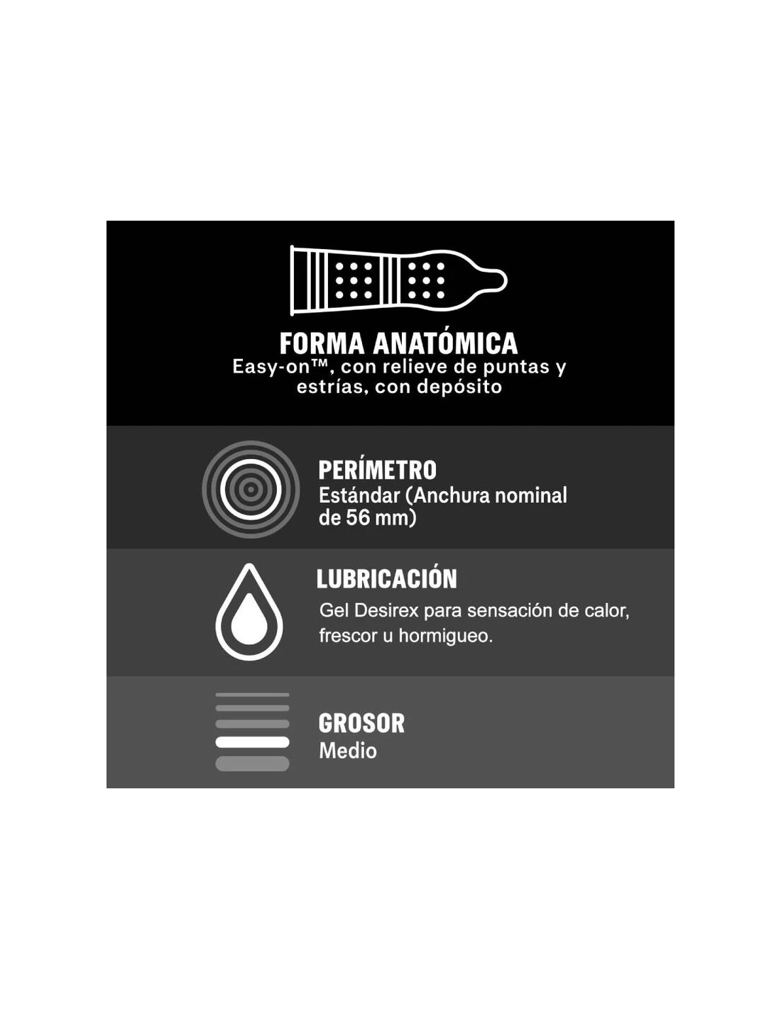 - Con lubricante efecto frescor para intensificar las sensaciones.
