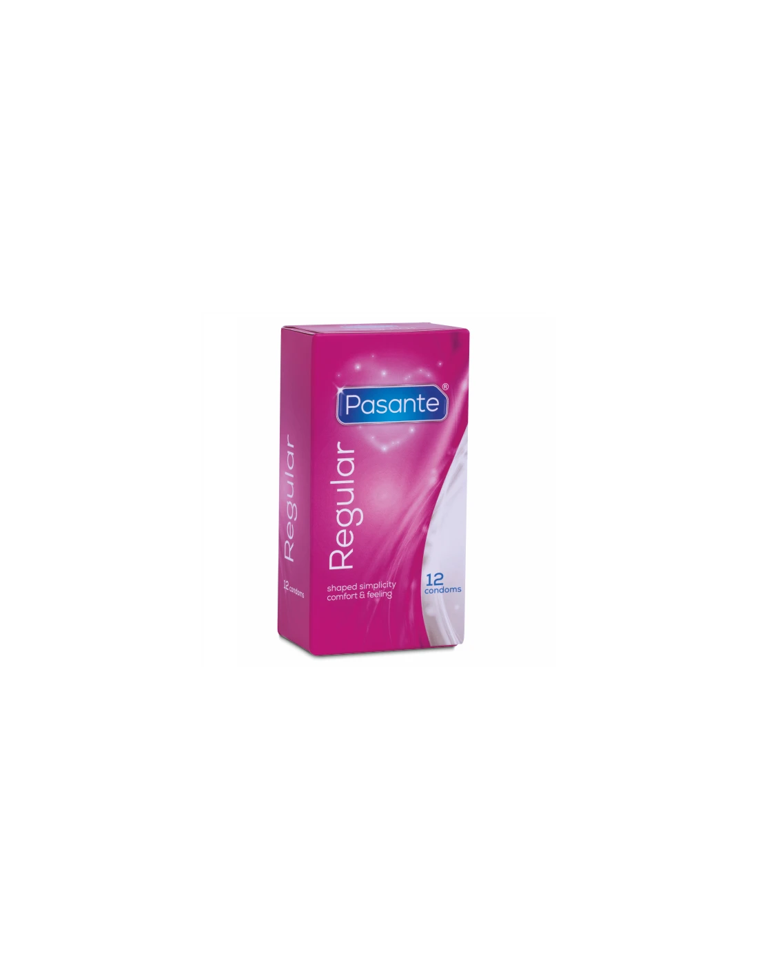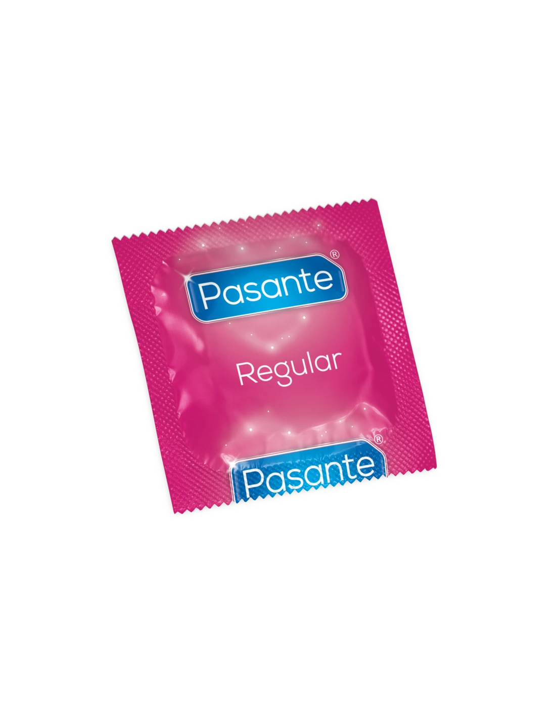 Los condones Pasante Regular tienen una ligera forma cónica para una sensación natural. Suave, de color natural y con punta de tetina.