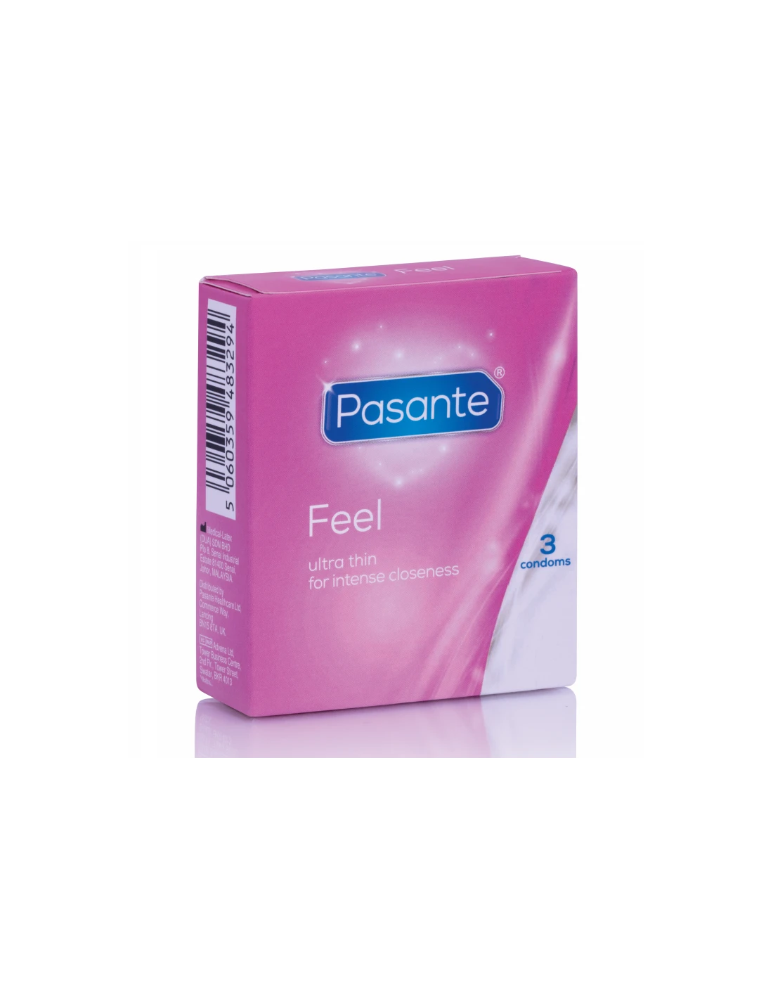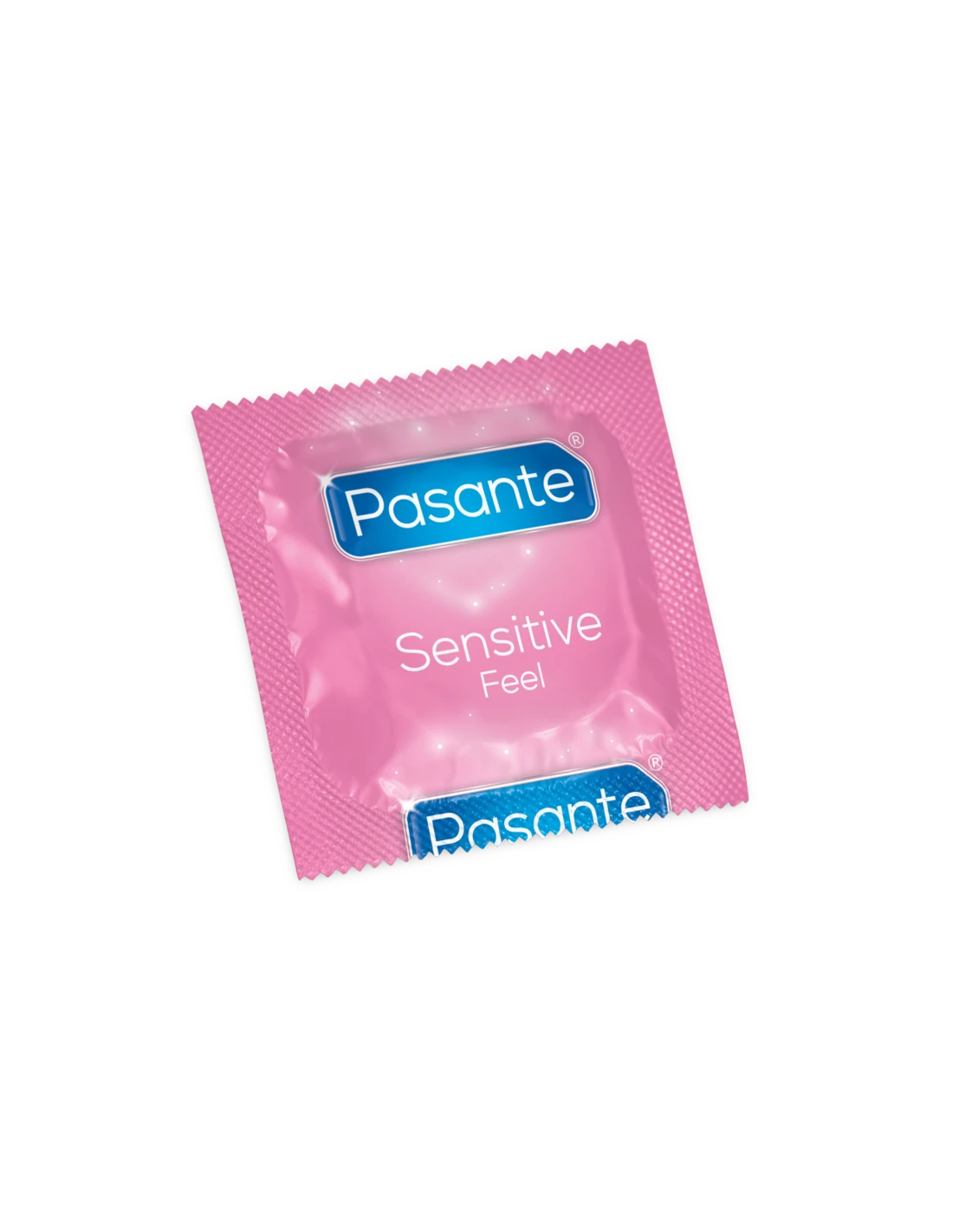 Los condones Pasante Sensitive Feel son ultra finos para una cercanía intensa. Color liso, paralelo y natural .