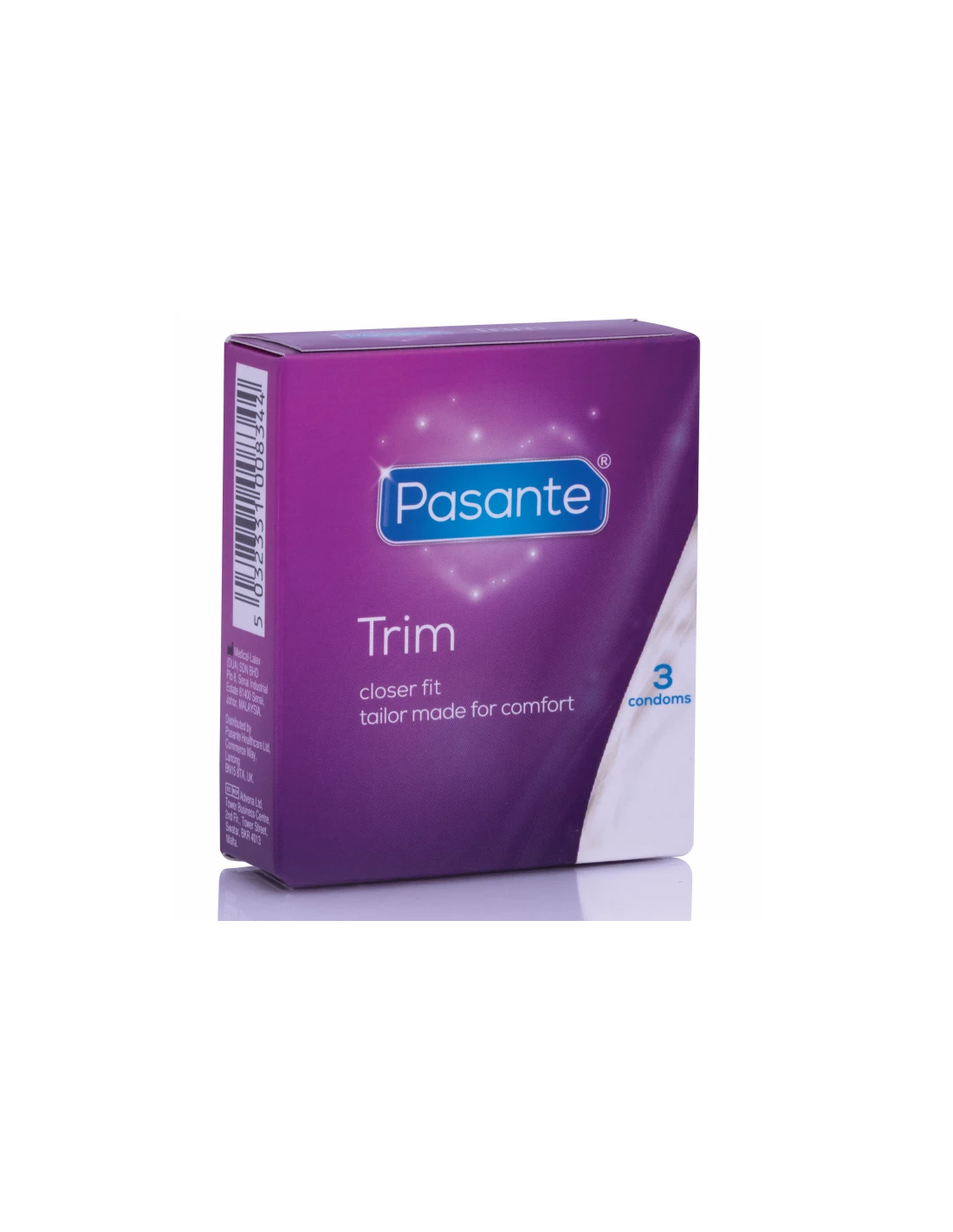 Los condones Pasante Trim ofrecen un ancho más estrecho para un ajuste más pequeño. Paralelos, lisos, de color natural .