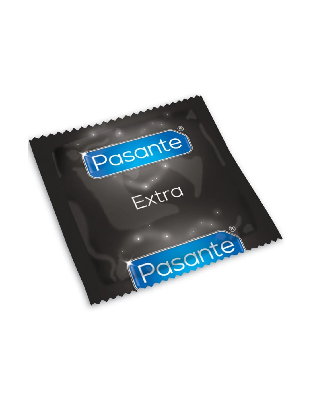 Los condones Pasante Extra son extra gruesos con lubricante adicional. Color liso, paralelo y natural.