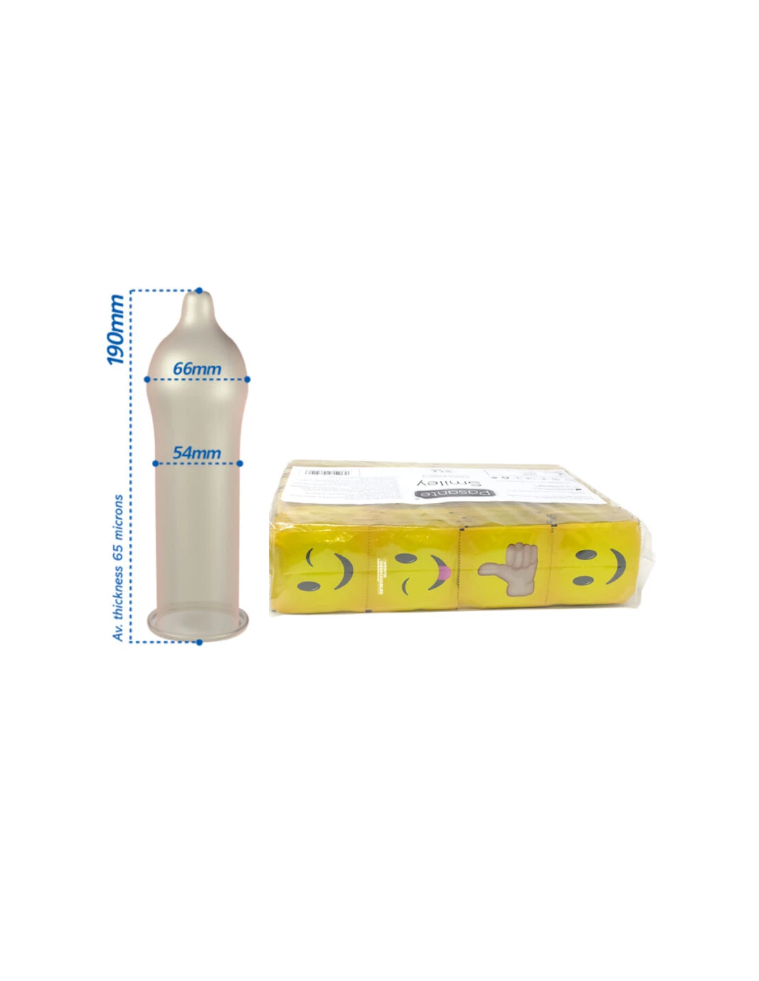 Preservativo smiley de la marca Pasante ofrecen simplicidad en las formas: comodidad y sensación. Contiene 4 diseños de láminas diferentes, de aproximadamente 36 piezas cada uno. Preservativos con 4 caras divertidas tipo Smiley, ideales para repartir en fiestas o despedidas de soltero o soltera.