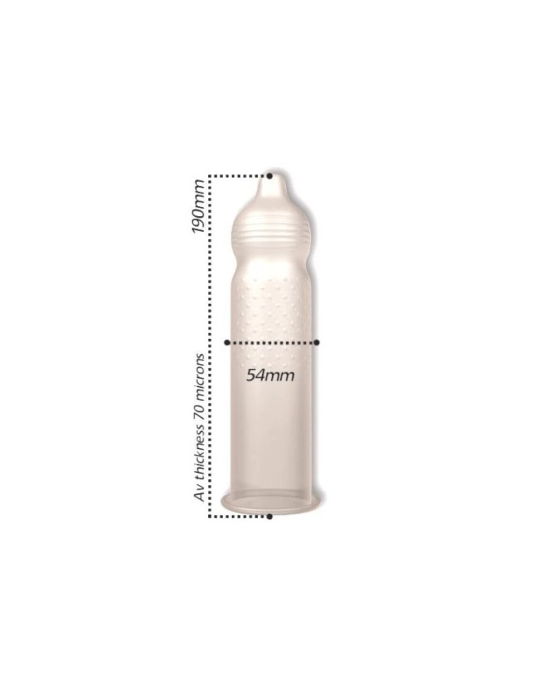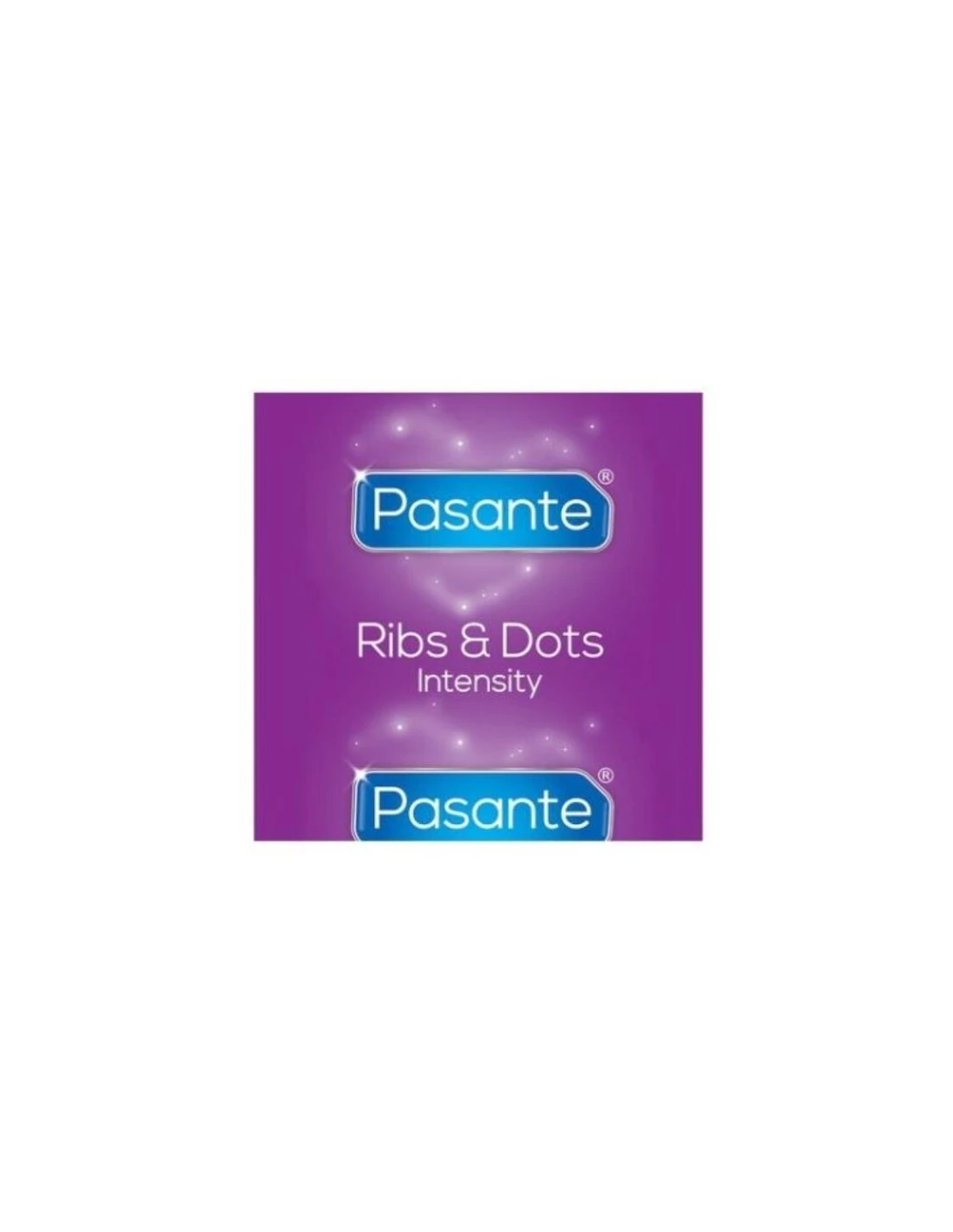 Condones con textura de estrías y puntos, para una mayor satisfacción y un mayor placer para ambas partes. Los condones Pasante Ribs & Dots Intensity son condones cónicos, texturizados con estrías y puntos pronunciados para una mayor sensación, de color natural y con terminación en tetina.