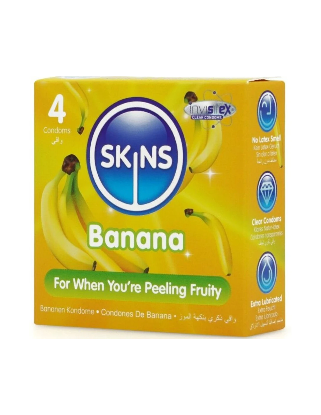 SKINS - PRESERVATIVOS PREMIUM SABOR PLÁTANO PACK 4