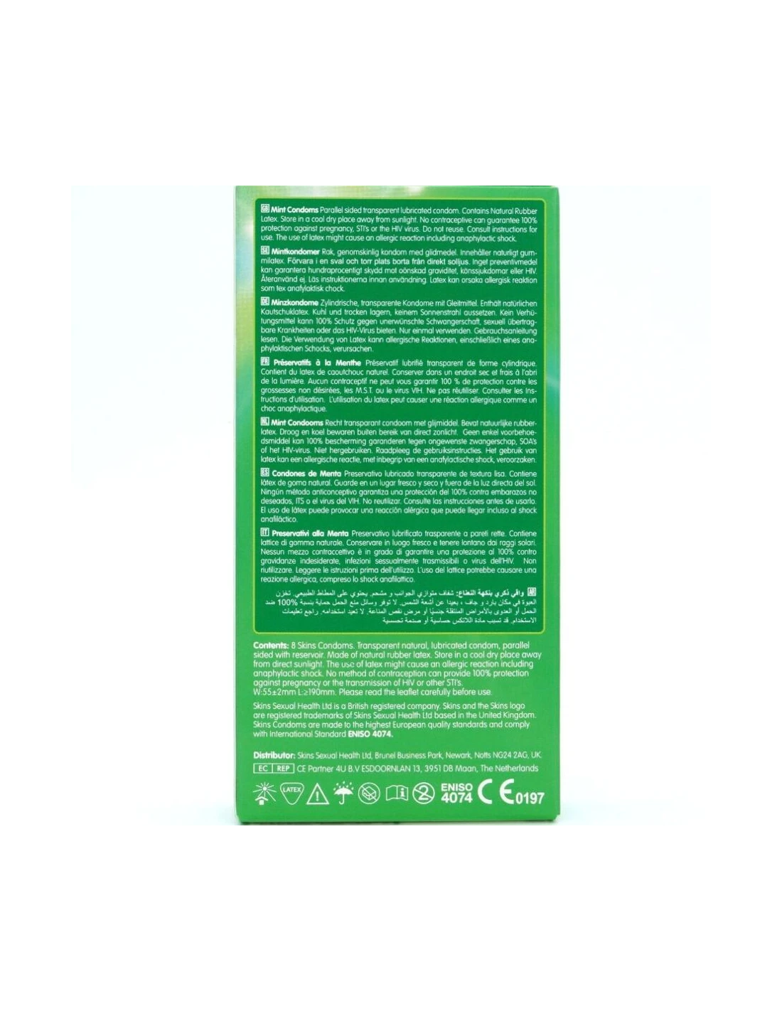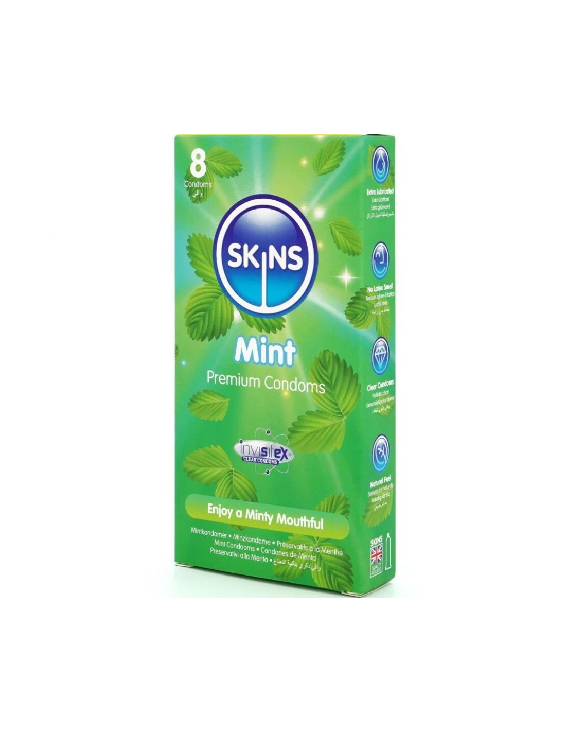 SKINS - PRESERVATIVOS PREMIUM SABOR MENTA PACK 8