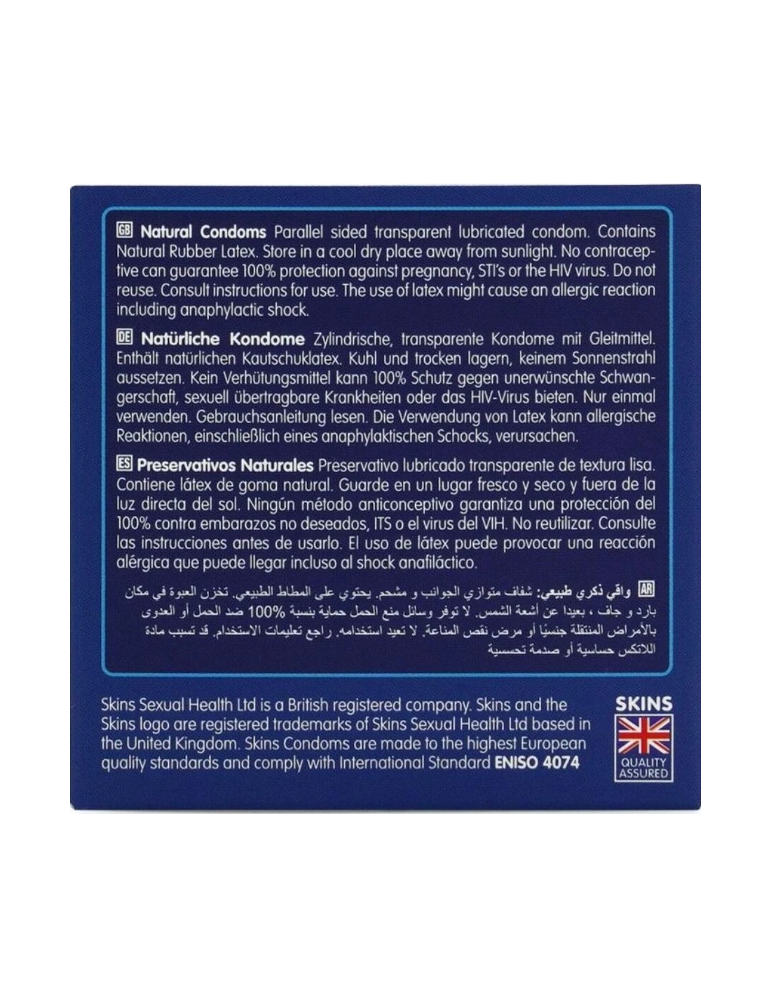 El Skins Natural 4-Pack está diseñado para ofrecer una calidad y un valor premium, ofreciendo un formato listo para usar con hasta un 33 % más de condones por paquete que el líder del mercado. Ideal para minoristas que buscan un producto esencial confiable y de gran éxito que combine discreción, comodidad y calidad. Fabricados con látex natural de alta calidad, los condones Skins Natural son transparentes, resistentes y ultrafinos, ofreciendo una sensación similar a la de la piel. Ligeramente infusionados con vainilla, eliminan el olor típico del látex, mejorando la comodidad y la confianza del usuario.