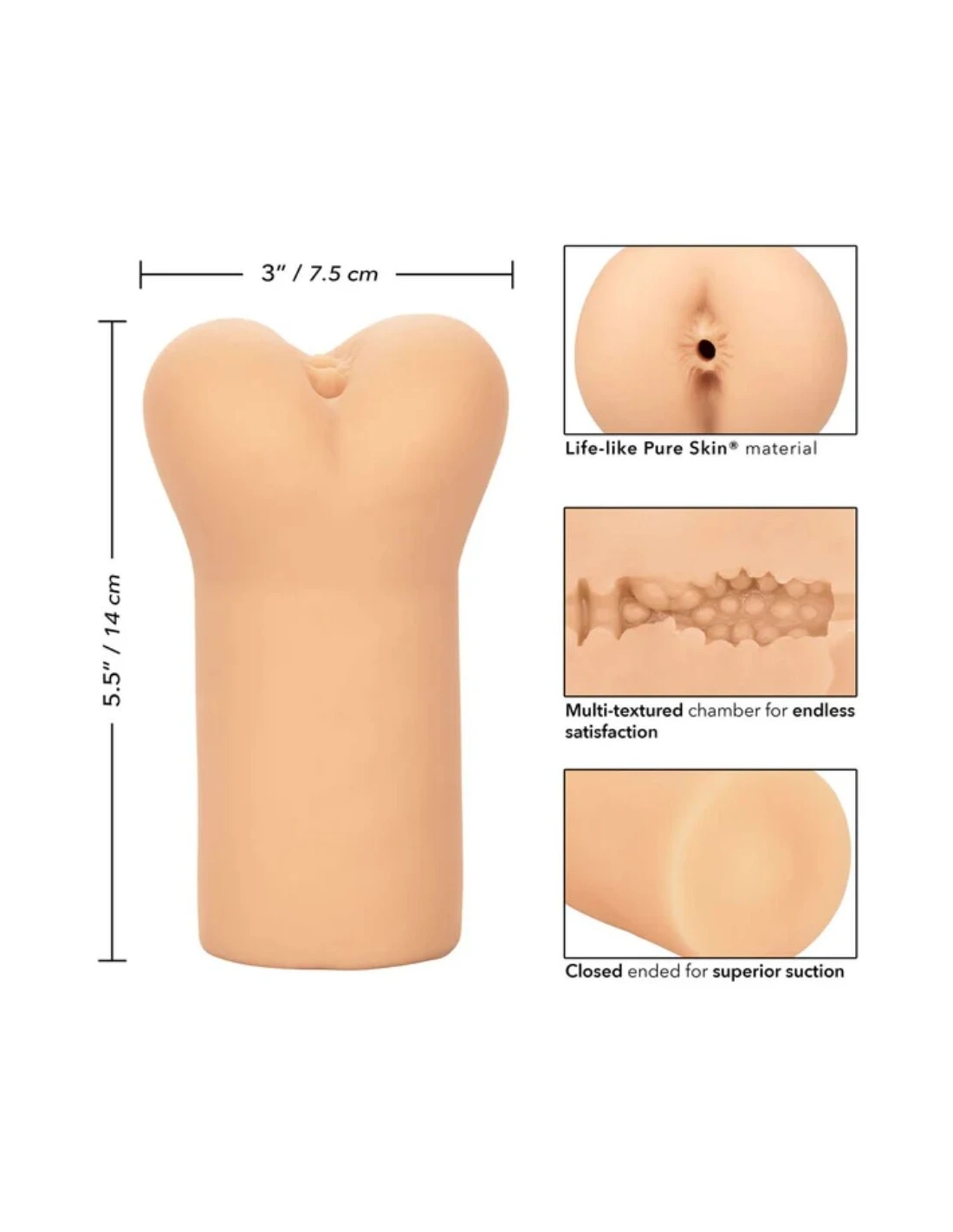 Material de piel pura realista | Suave, apretado y elástico | Cámara multitextura para una satisfacción infinita | Extremo cerrado para una succión superior | Higiénicamente superior y sin mantenimiento