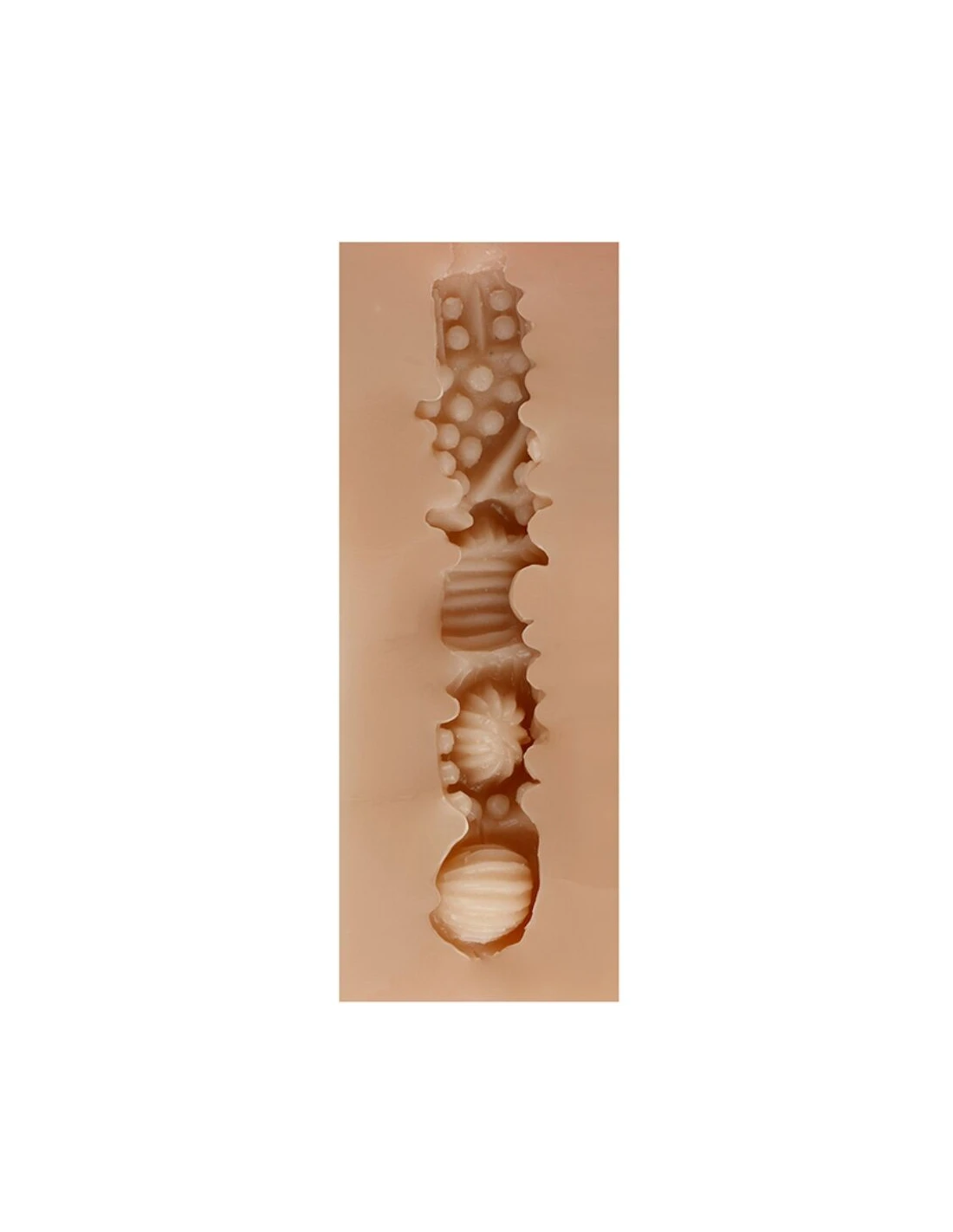 - Textura interna ultrasensorial: El canal interno está diseñado con diferentes texturas, como estrías, nódulos y puntos de presión, que aumentan la fricción y la estimulación en cada movimiento. Dependiendo del modelo, algunas versiones cuentan con cámaras de succión que intensifican la sensación de succión natural.