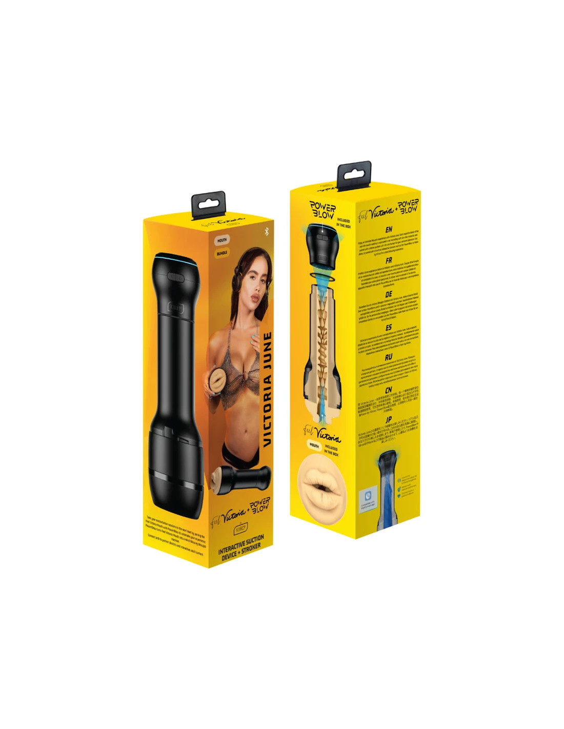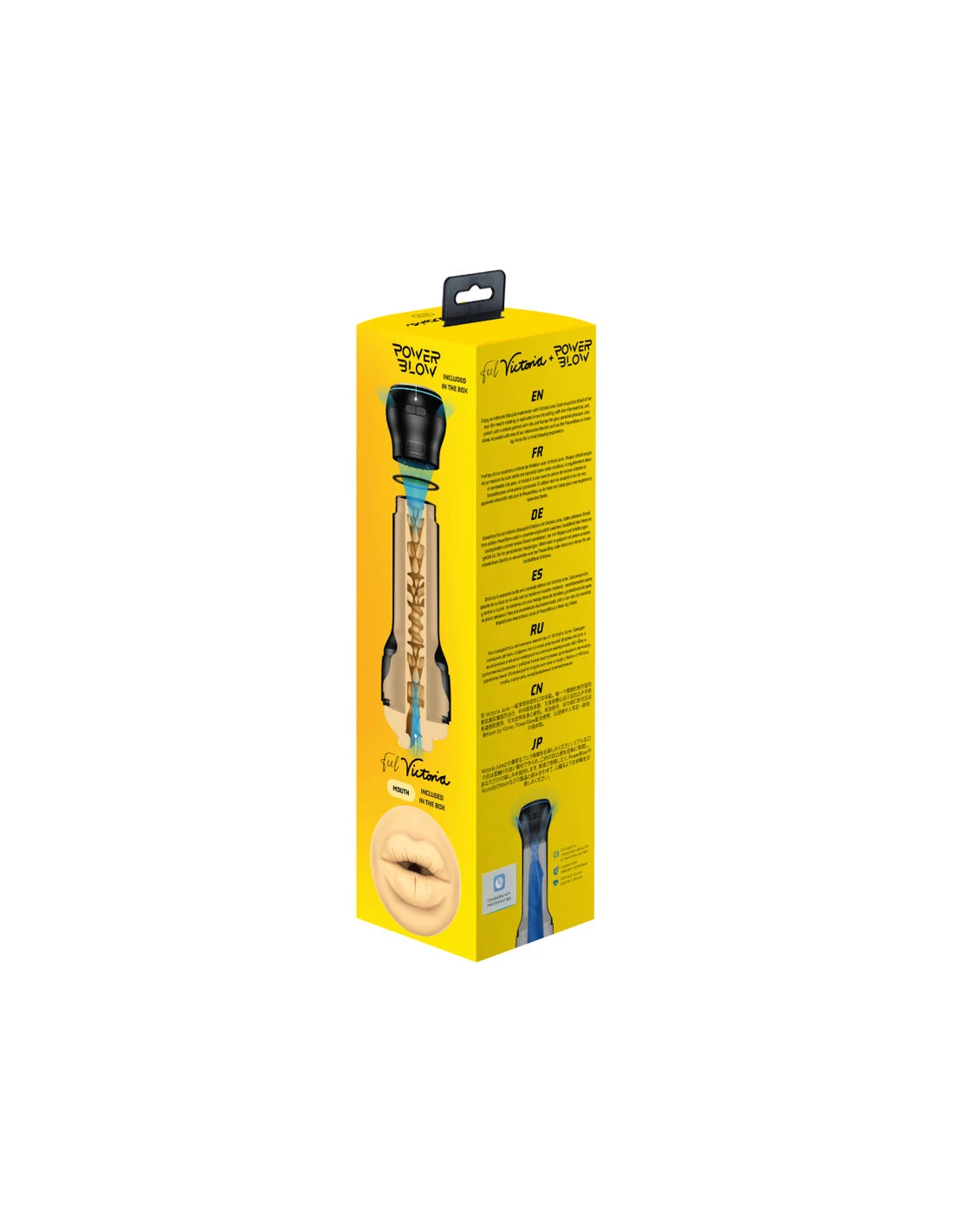 El FeelVictoria Mouth Stroker fue diseñado para usarse con PowerBlow, la ventosa de Kiiroo y Keon, el masturbador insignia de Kiiroo que acercará más que nunca a los fanáticos a sentir lo que es estar con Victoria. El PowerBlow es un dispositivo de succión interactivo que se ajusta al extremo de los Strokers Kiiroo Feel (Stars) y otras marcas líderes que utilizan el mismo mecanismo de rosca que los Strokers Feel (Stars).