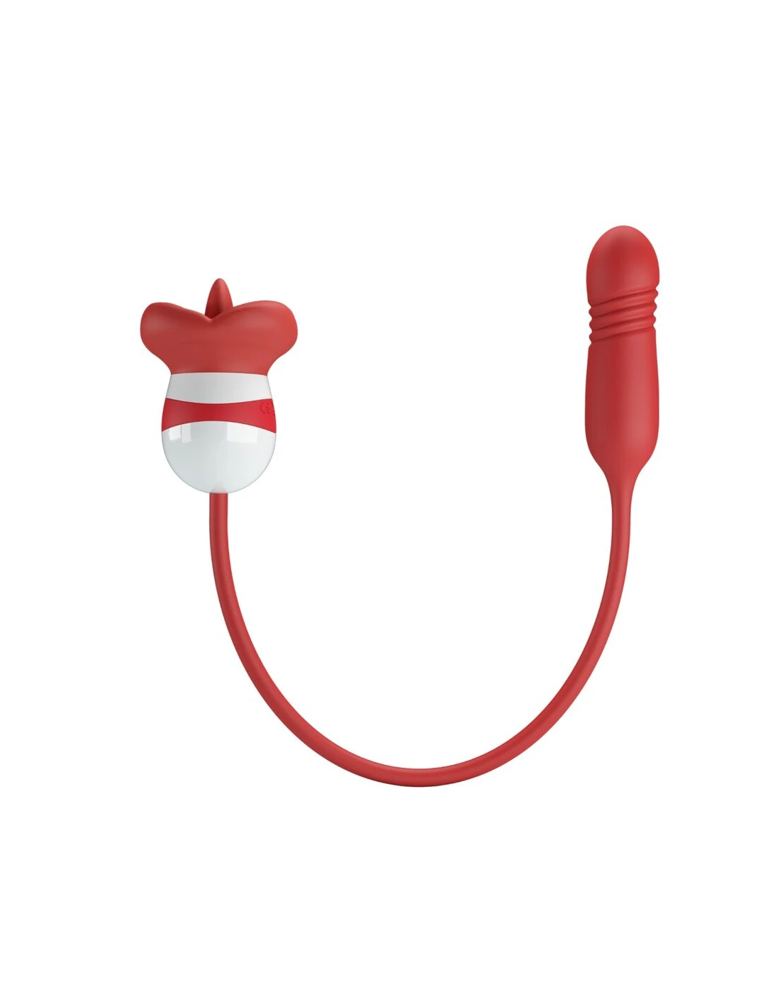 Este vibrador con forma de boca tiene una bala de empuje única y una lengua que lame.