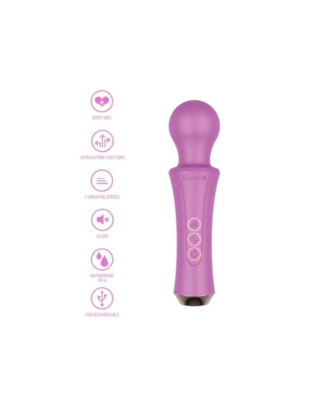 Conoce a tu nuevo mejor amigo: la varita personal de XOCOON. Esta varita recargable tiene una espectacular vibración fuerte, profunda y retumbante, pero casi sin vibraciones en el mango para una máxima comodidad. Elige entre 3 velocidades diferentes y 10 patrones de vibración y disfruta de un gran masaje por todo tu cuerpo.