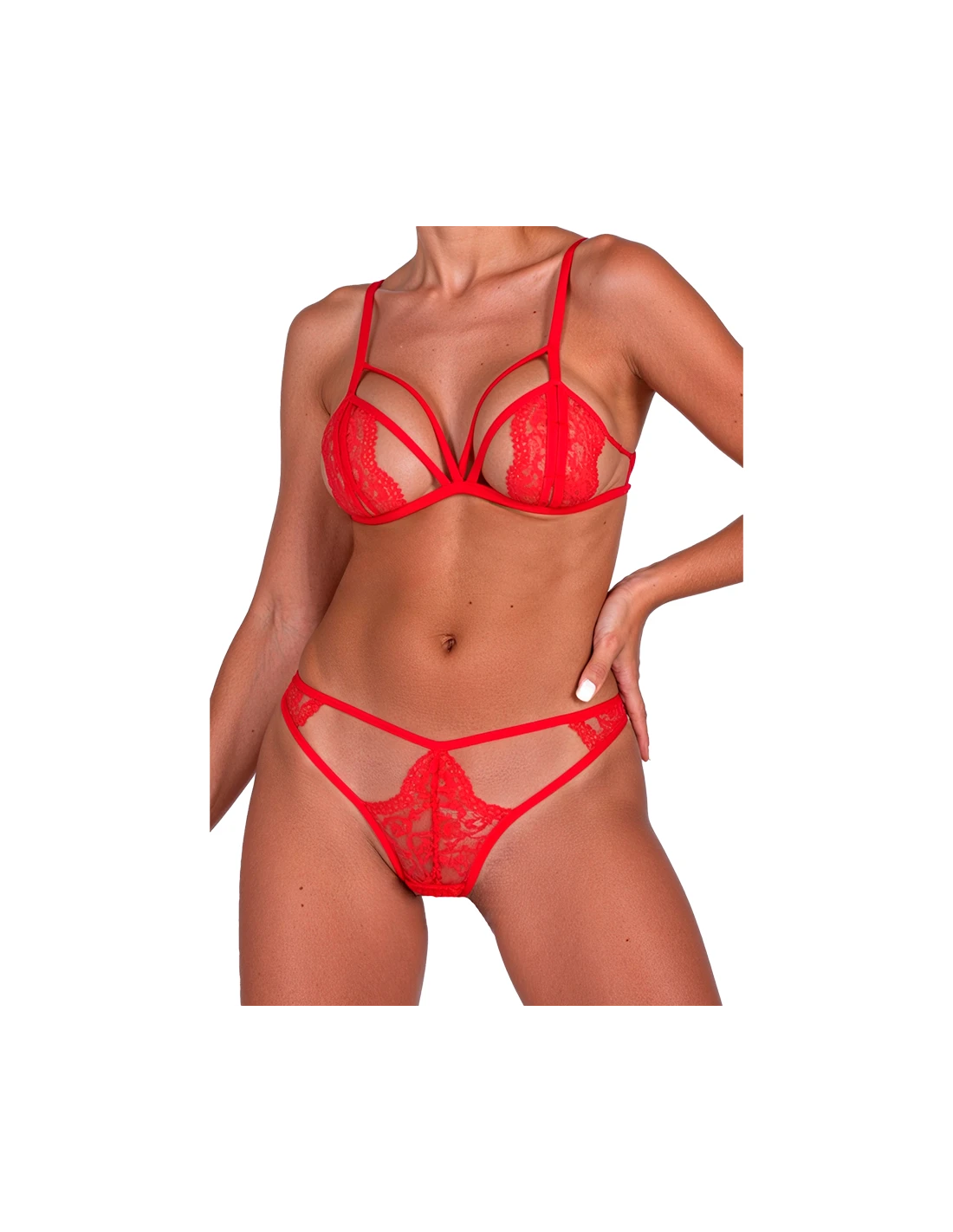 - Incluye: Sujetador de encaje con tirantes ajustables + braguita de tanga con aberturas
