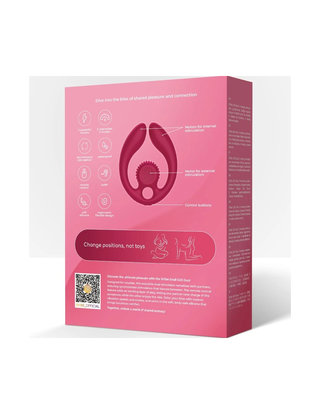 Descubre el placer definitivo con el Snail Vibe GIZI Duo, un exquisito estimulador dual diseñado especialmente para parejas. Este innovador dispositivo estimula a ambos miembros de forma sincronizada, ofreciendo una experiencia compartida única y emocionante. Gracias a su control remoto, uno de los miembros puede tomar el mando de las sensaciones, creando juegos previos llenos de complicidad y sorpresa. Fabricado en silicona suave y segura para el cuerpo, el GIZI Duo garantiza una experiencia cómoda, placentera y de lujo. Personaliza tu placer con velocidades y modos de vibración personalizados, y disfruta de la suave silicona segura para el cuerpo que brinda una comodidad lujosa. ¡Juntos, descubran un mundo de éxtasis compartido!