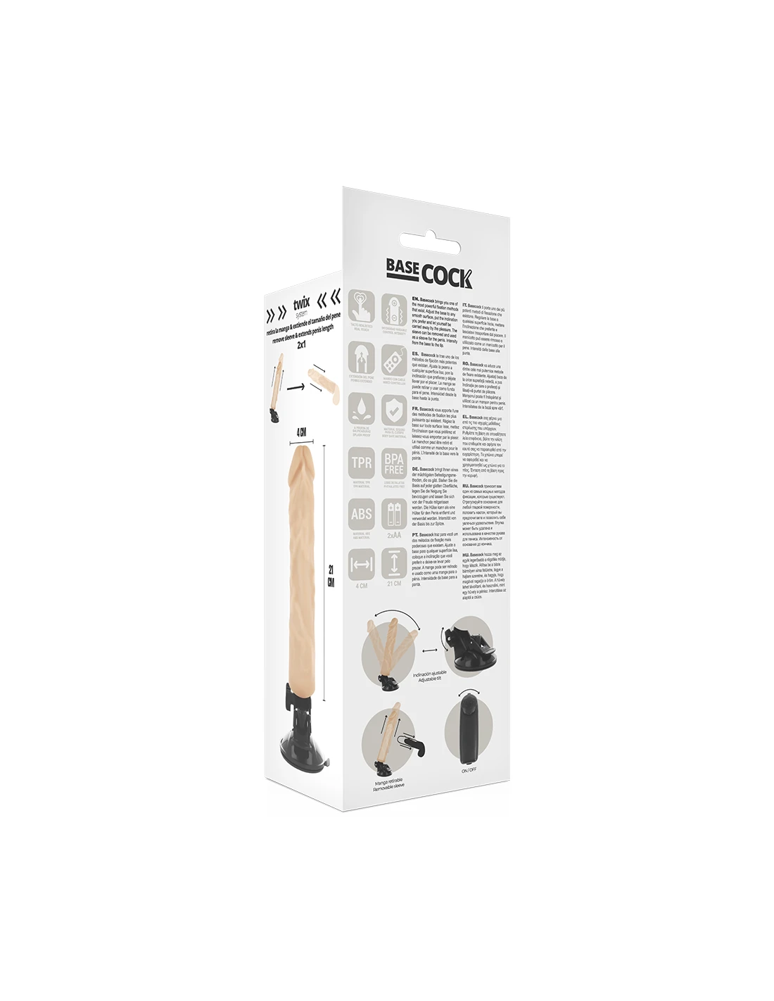 BASECOCK VIBRADOR REALISTICO CONTROL REMOTO NATURAL 21 CM O 4 CM