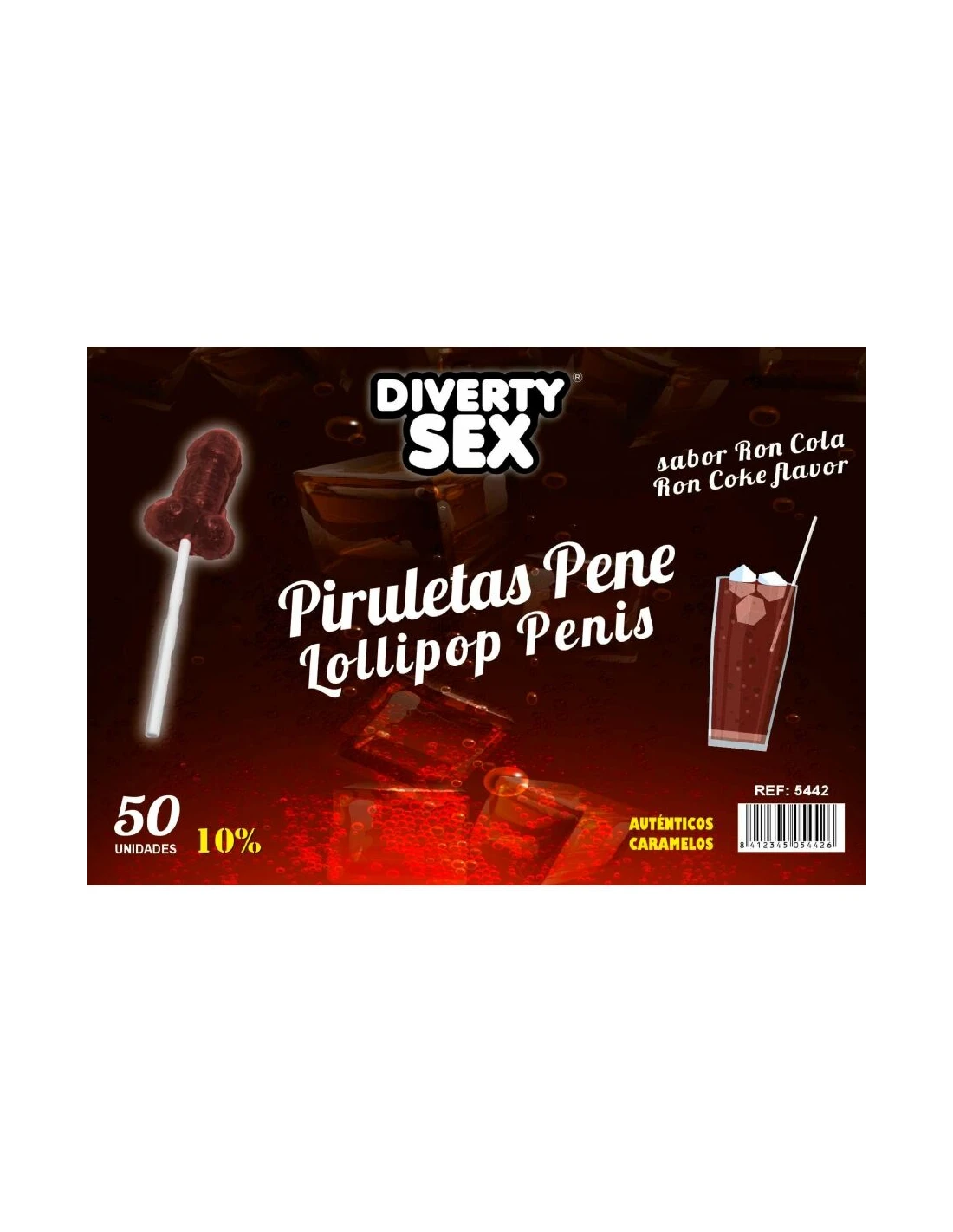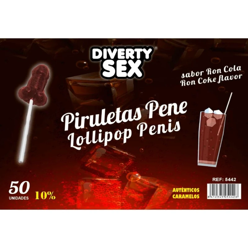 DIABLO GOLOSO - 50 PIRULETAS PENE RON COLA 10% ALCOHOL
