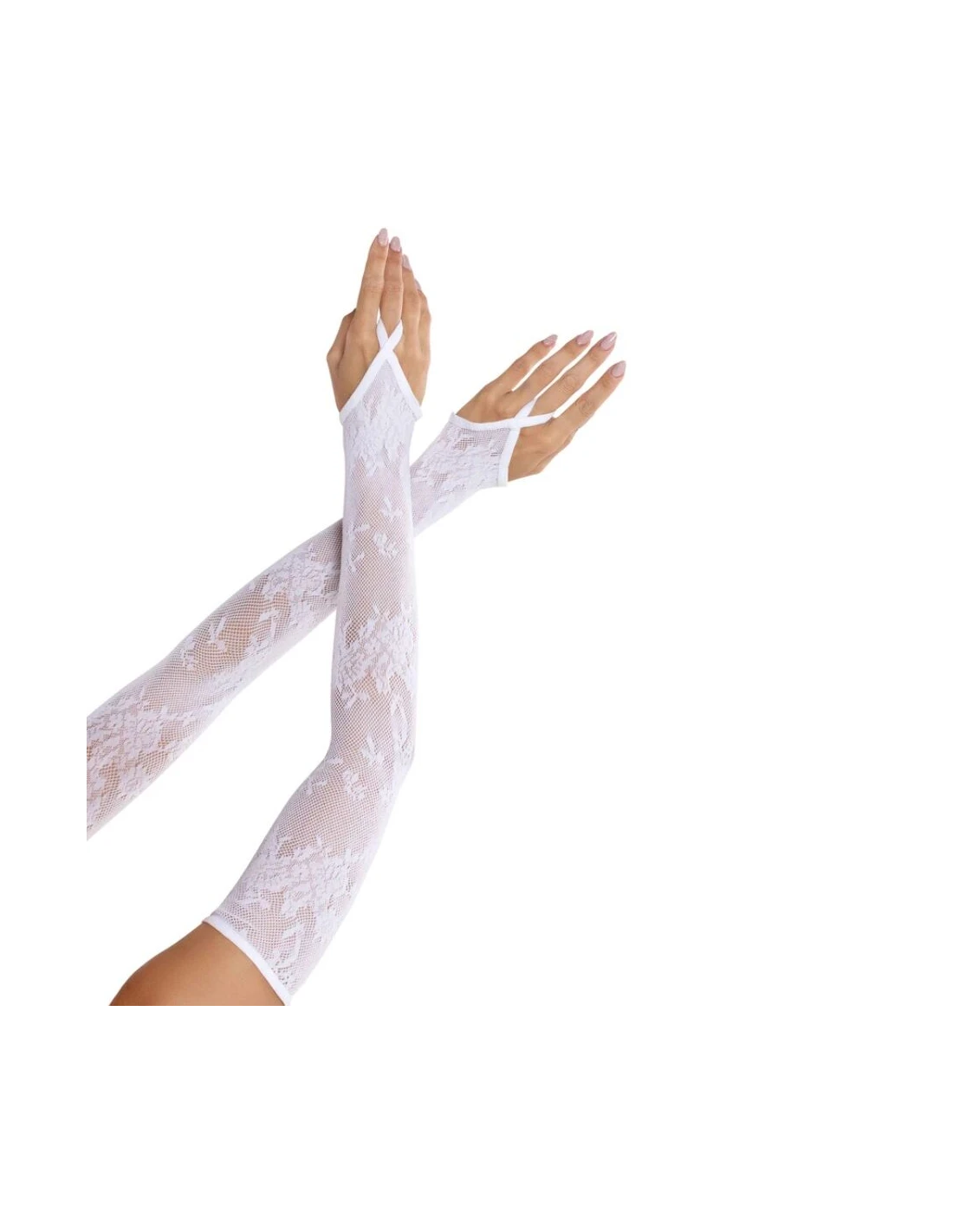 LEG AVENUE - GUANTES EXTRALARGOS CALIENTABRAZOS DE ENCAJE FLORAL BLANCO