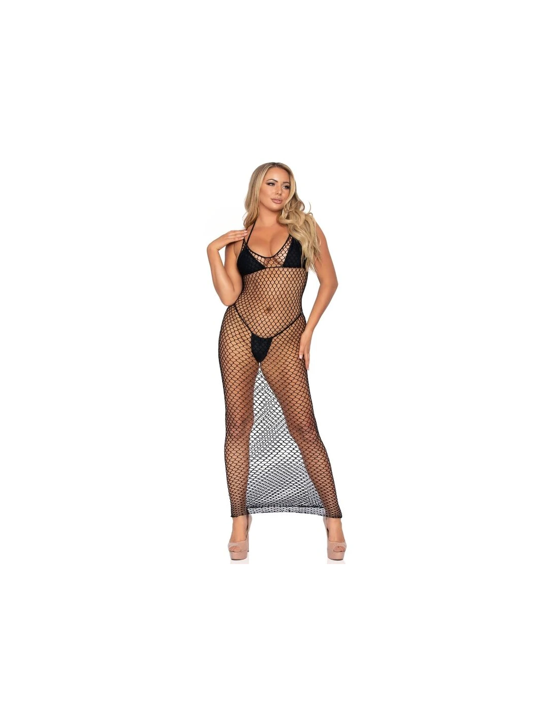 LEG AVENUE - MAXI VESTIDO DE RED TRENZADA CON ESPALDA DESCUBIERTA NEGRO