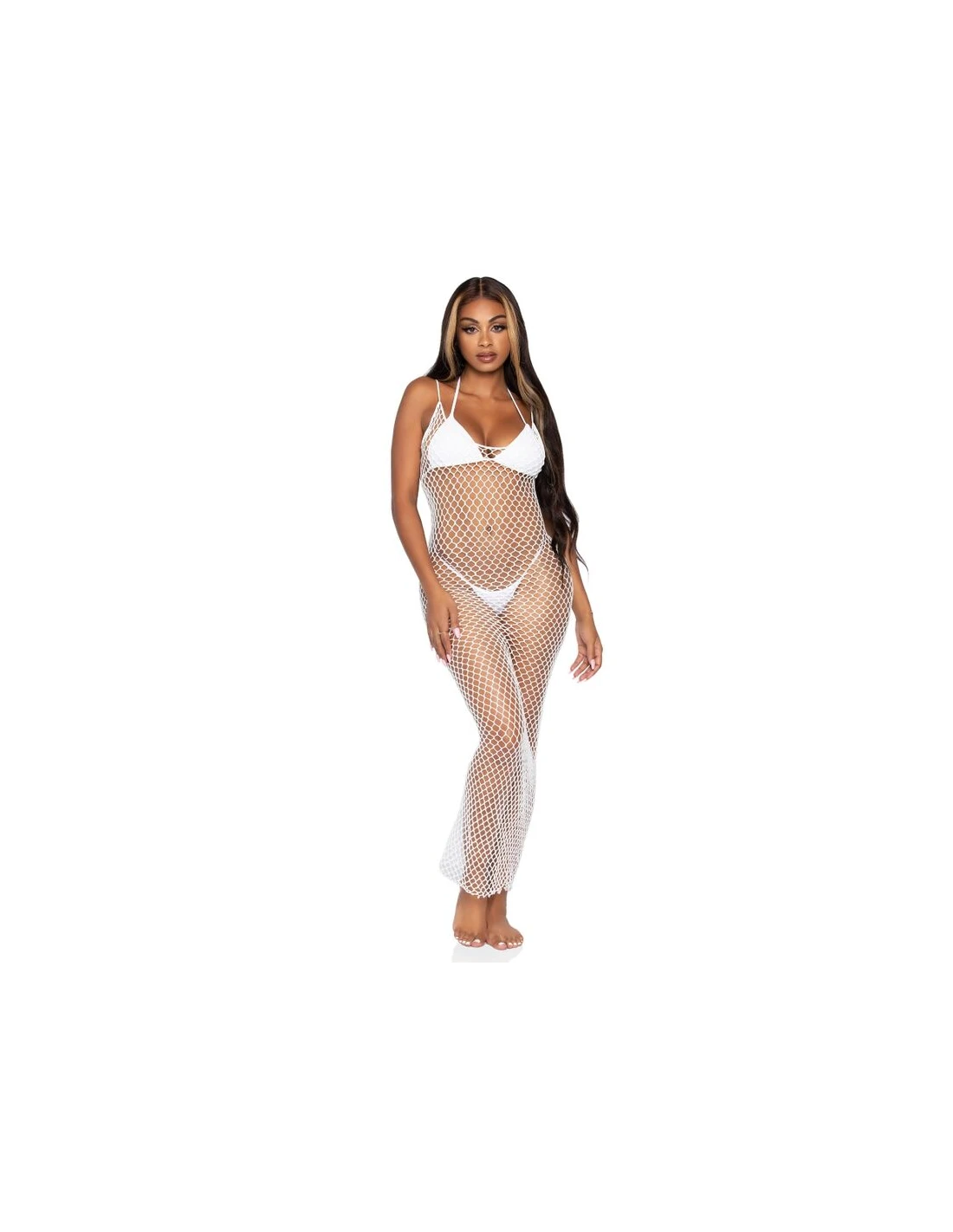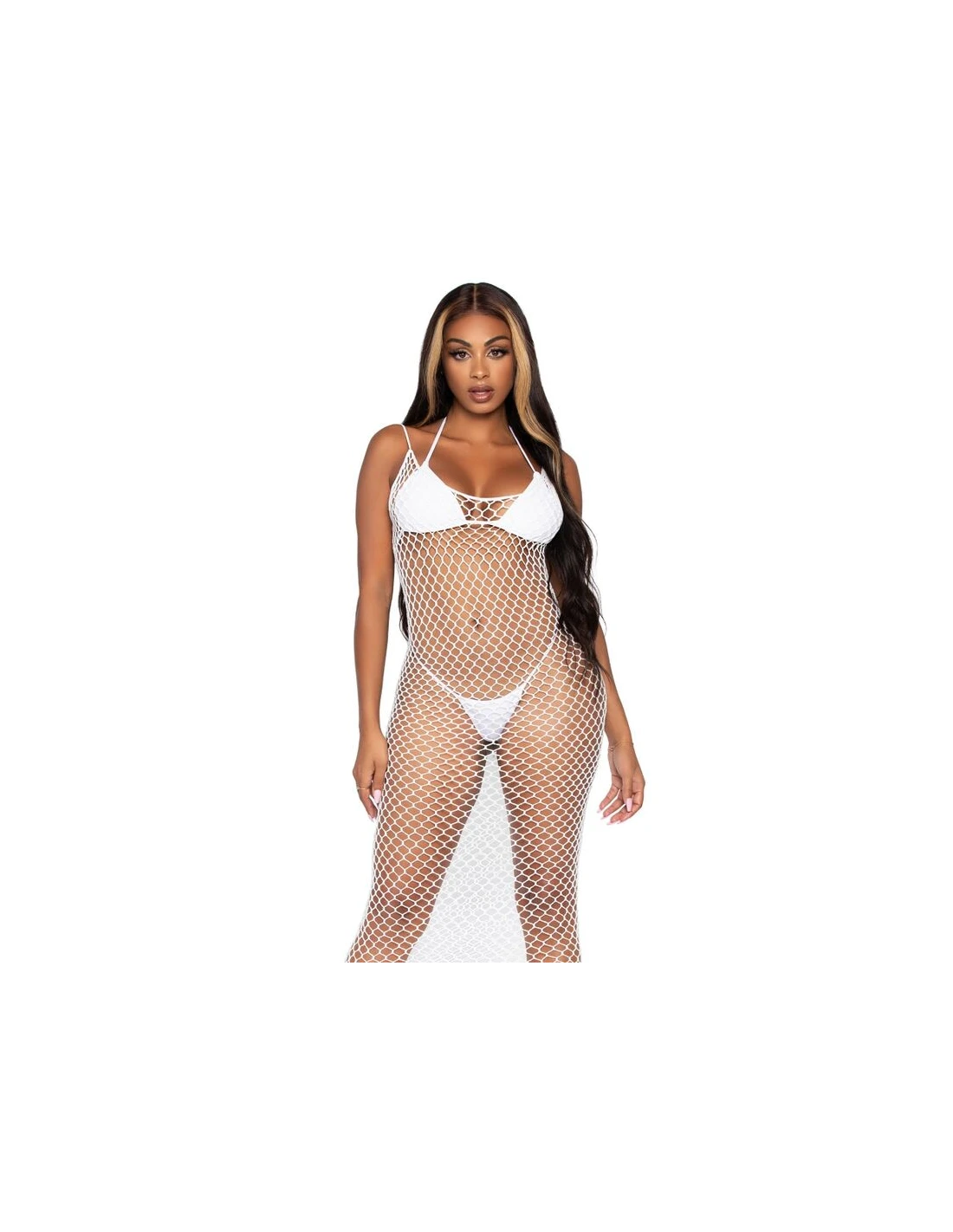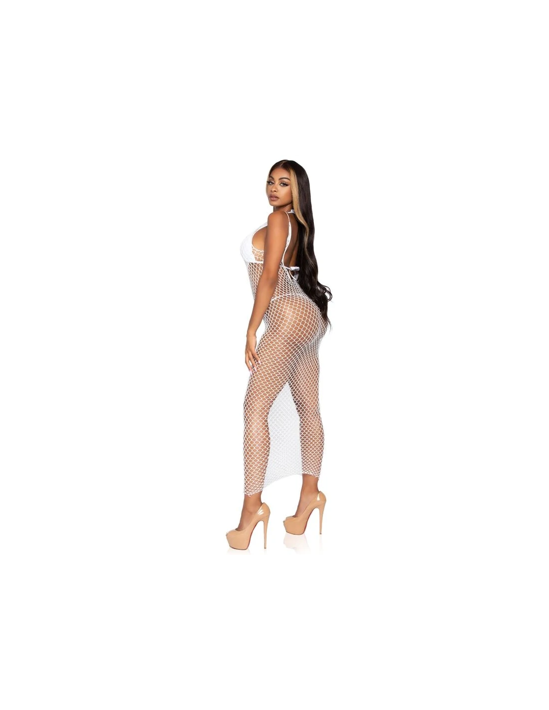 LEG AVENUE MAXI VESTIDO DE RED TRENZADA CON ESPALDA DESCUBIERTA BLANCO