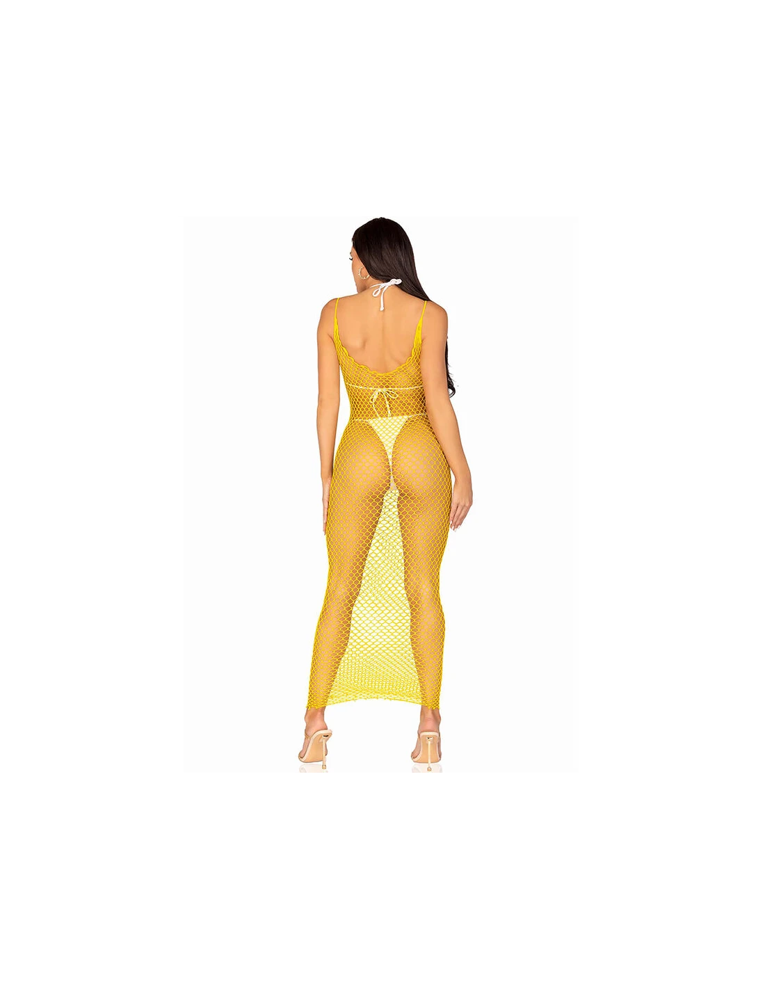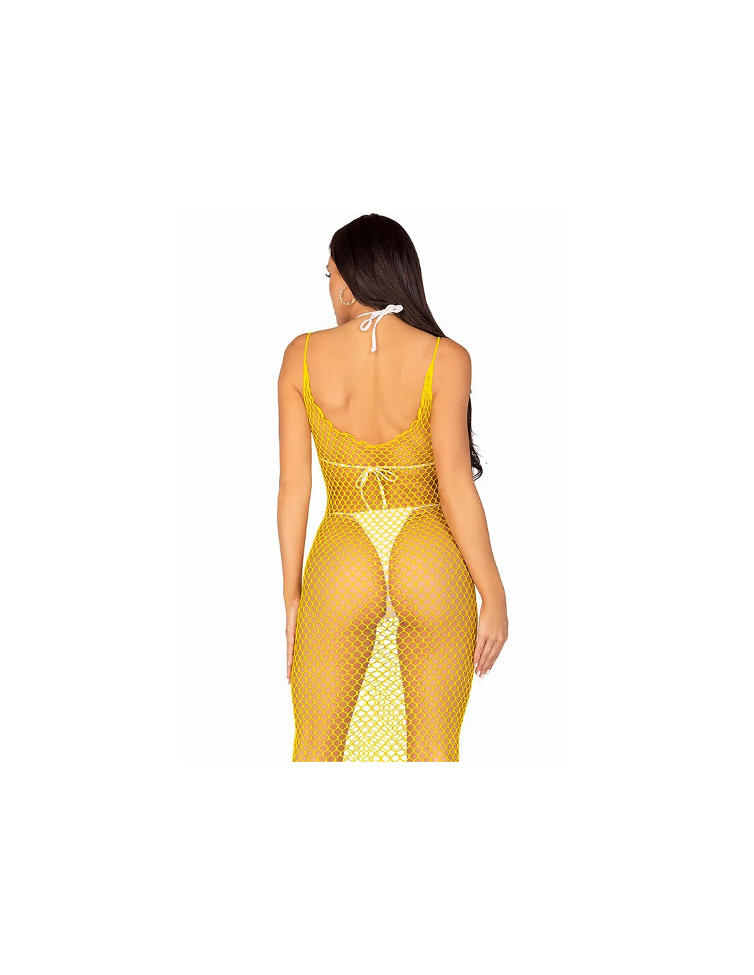 LEG AVENUE - VESTIDO DE REJILLA LARGO AMARILLO TALLA ÚNICA