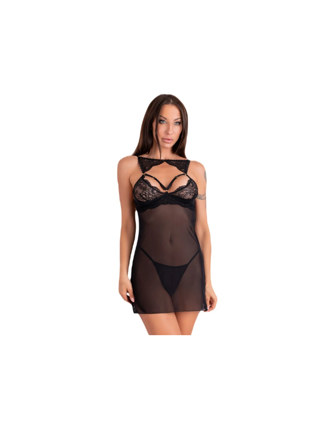 LIVCO CORSETTI FASHION - KROLINA LC 90734 CHEMISE + TANGA NEGRO S/M