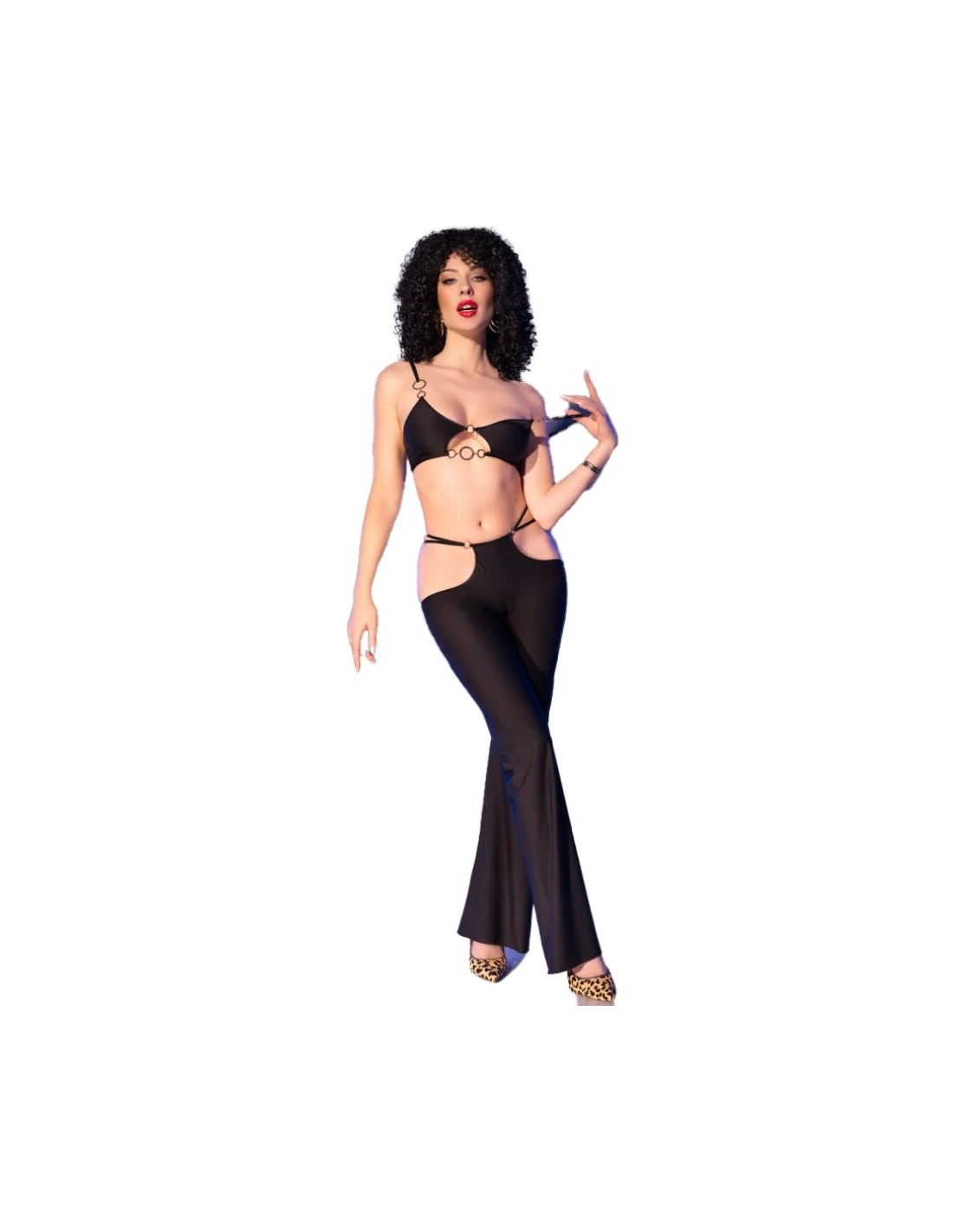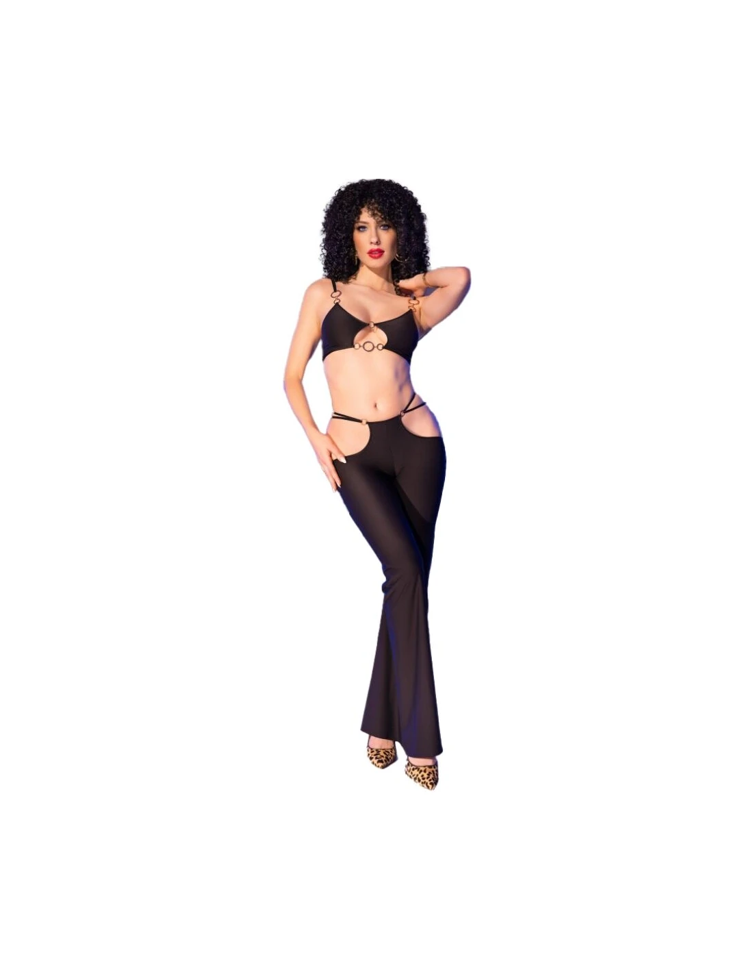 CHILIROSE - CR 4851 SET TOP NEGRO Y LEGGINS CON COMPLEMENTOS DORADOS