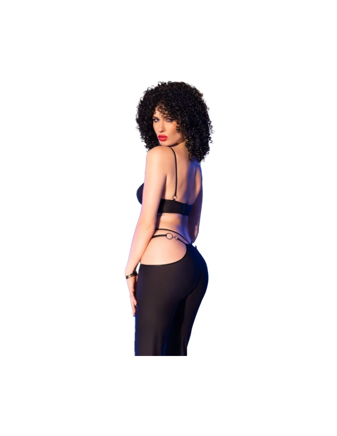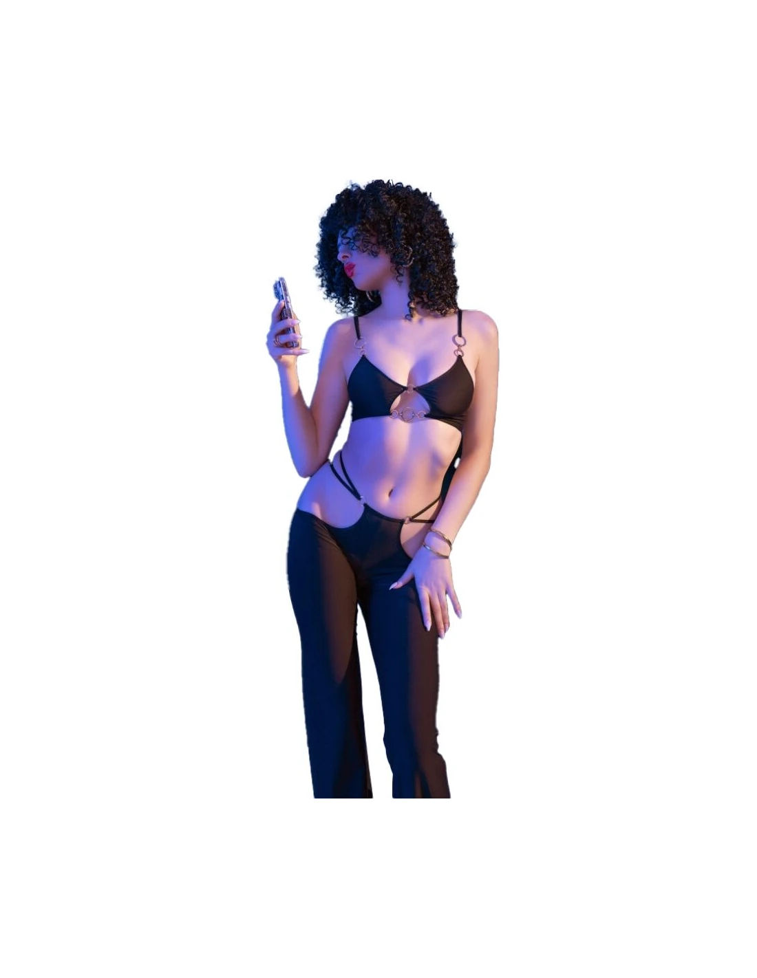 CHILIROSE CR 4851 SET TOP NEGRO Y LEGGINS CON COMPLEMENTOS DORADOS S