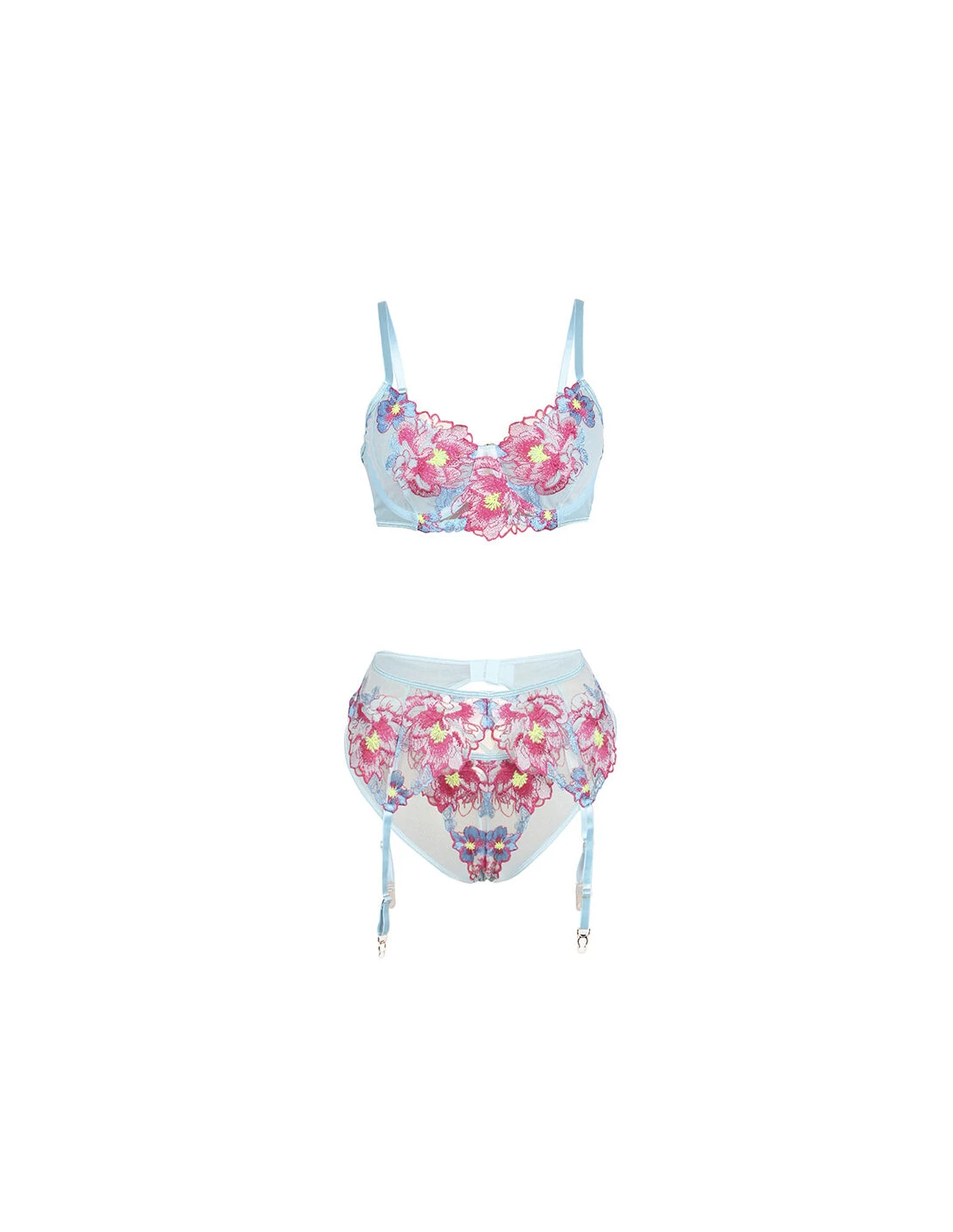 SUBBLIME - 957643 CONJUNTO SUJETADOR Y LIGUERO CON BORDADOS DE FLORES ROSAS S/M