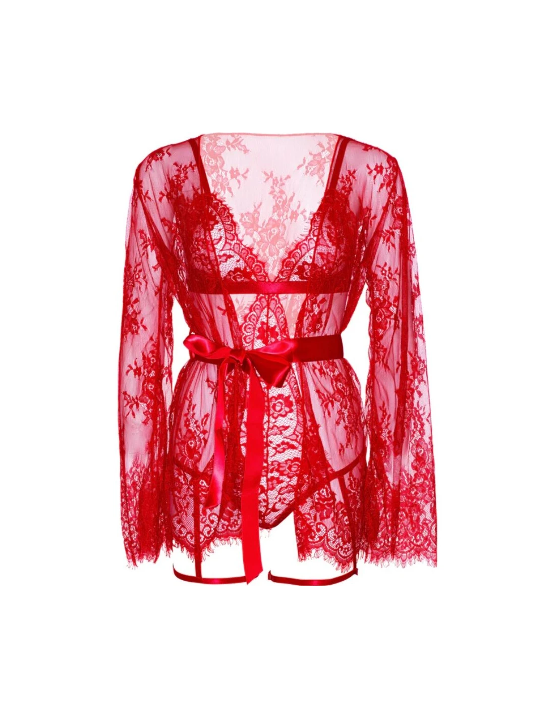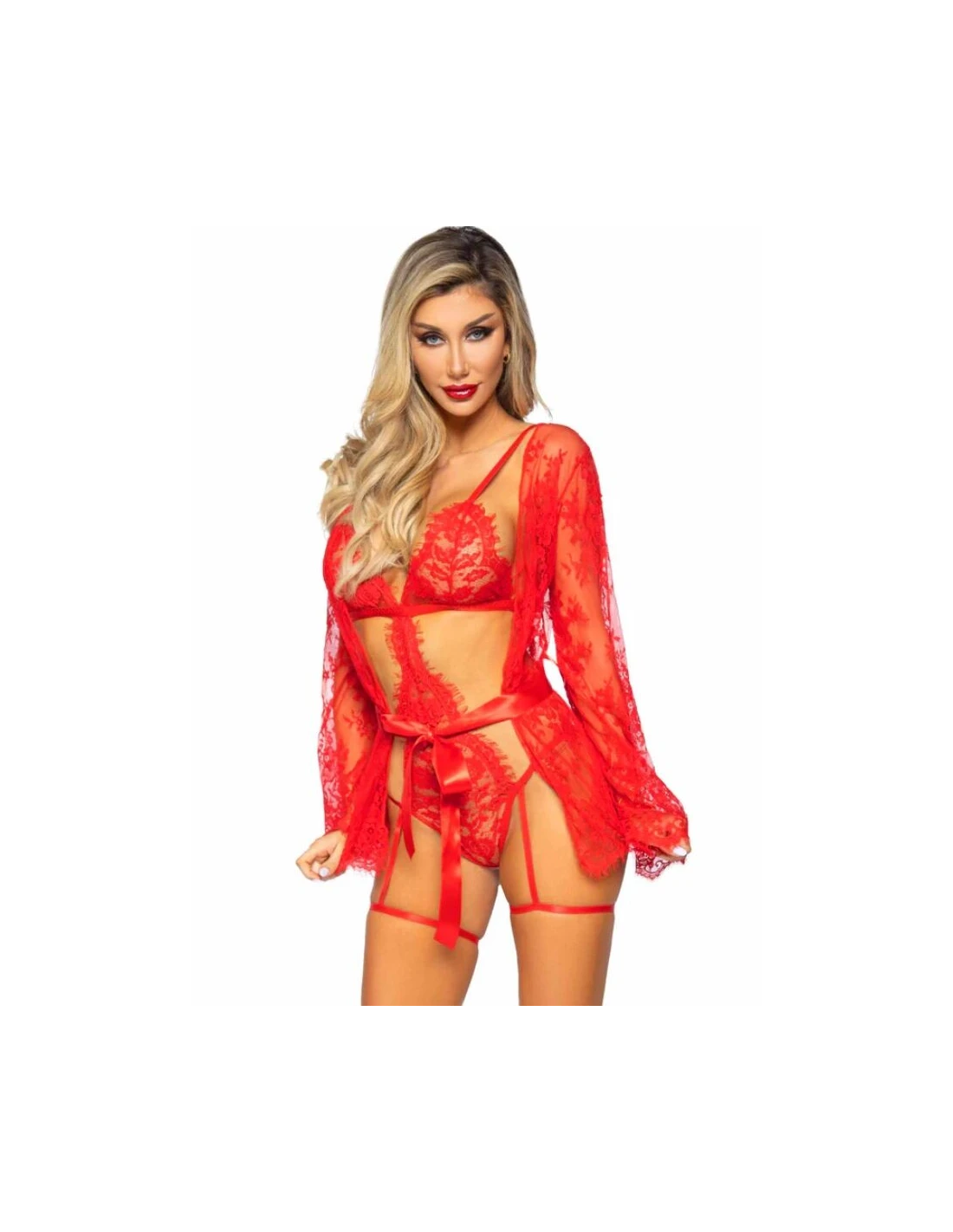 LEG AVENUE - SET BODY + BATA DE LIGUERO ROJO