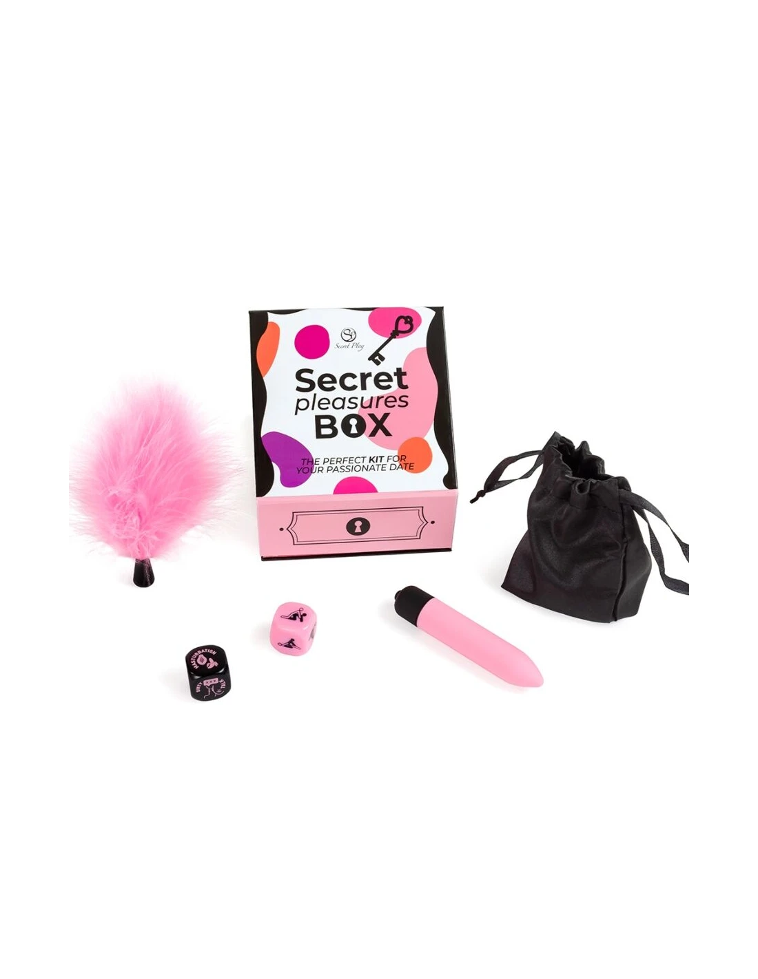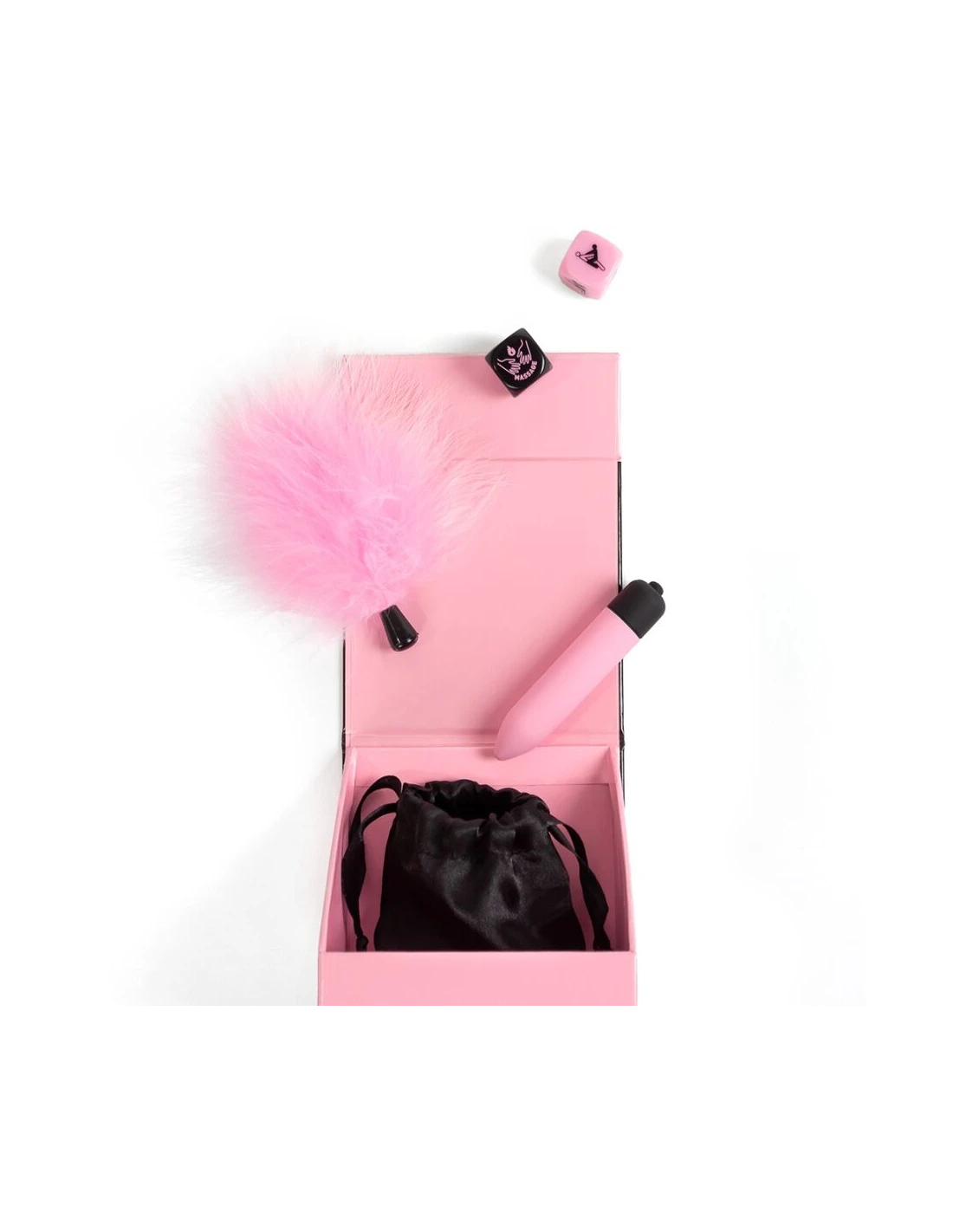 SECRET PLAY - CAJA DE PLACERES PARA PAREJAS DADOS + BALA VIBRADORA + PLUMERO