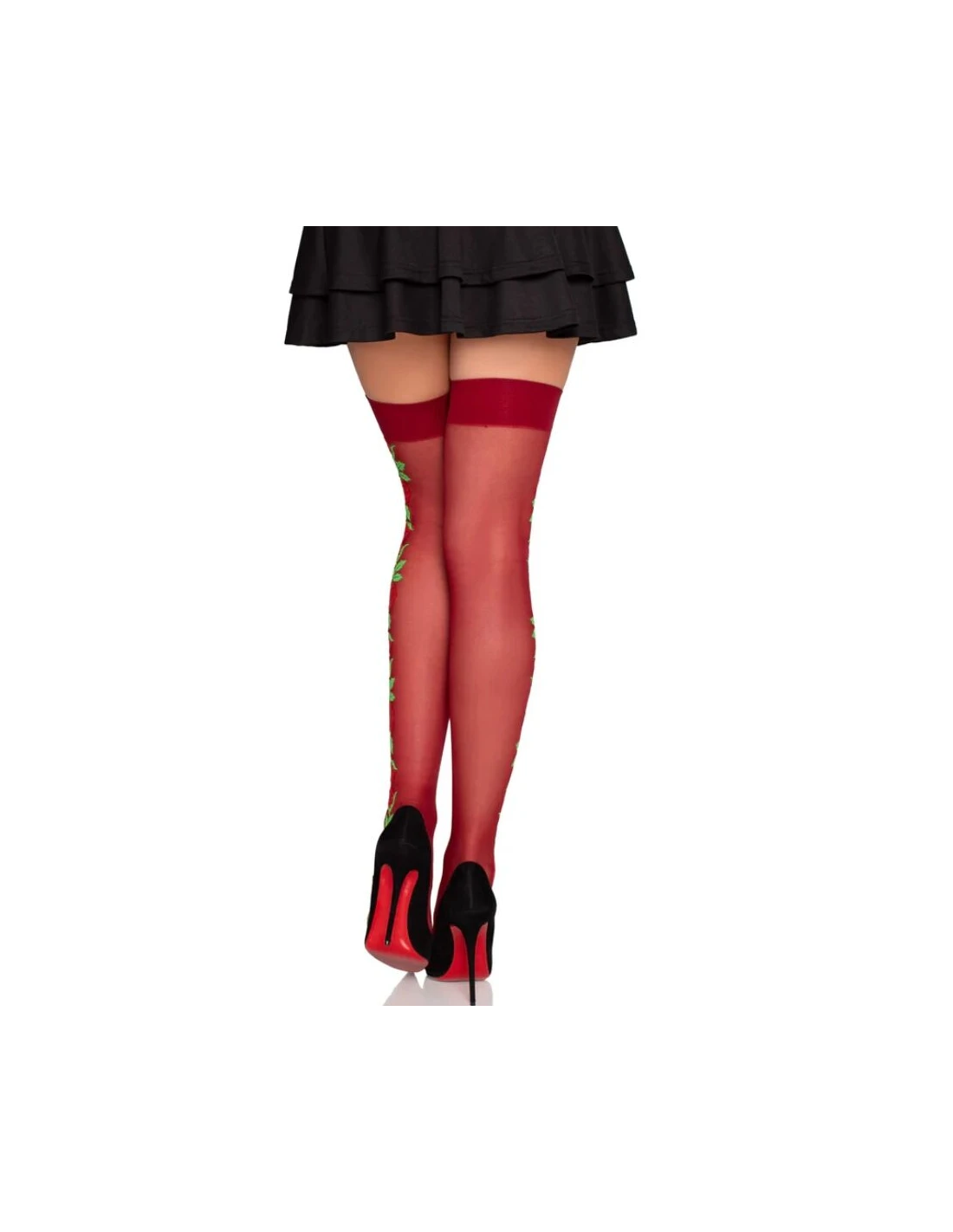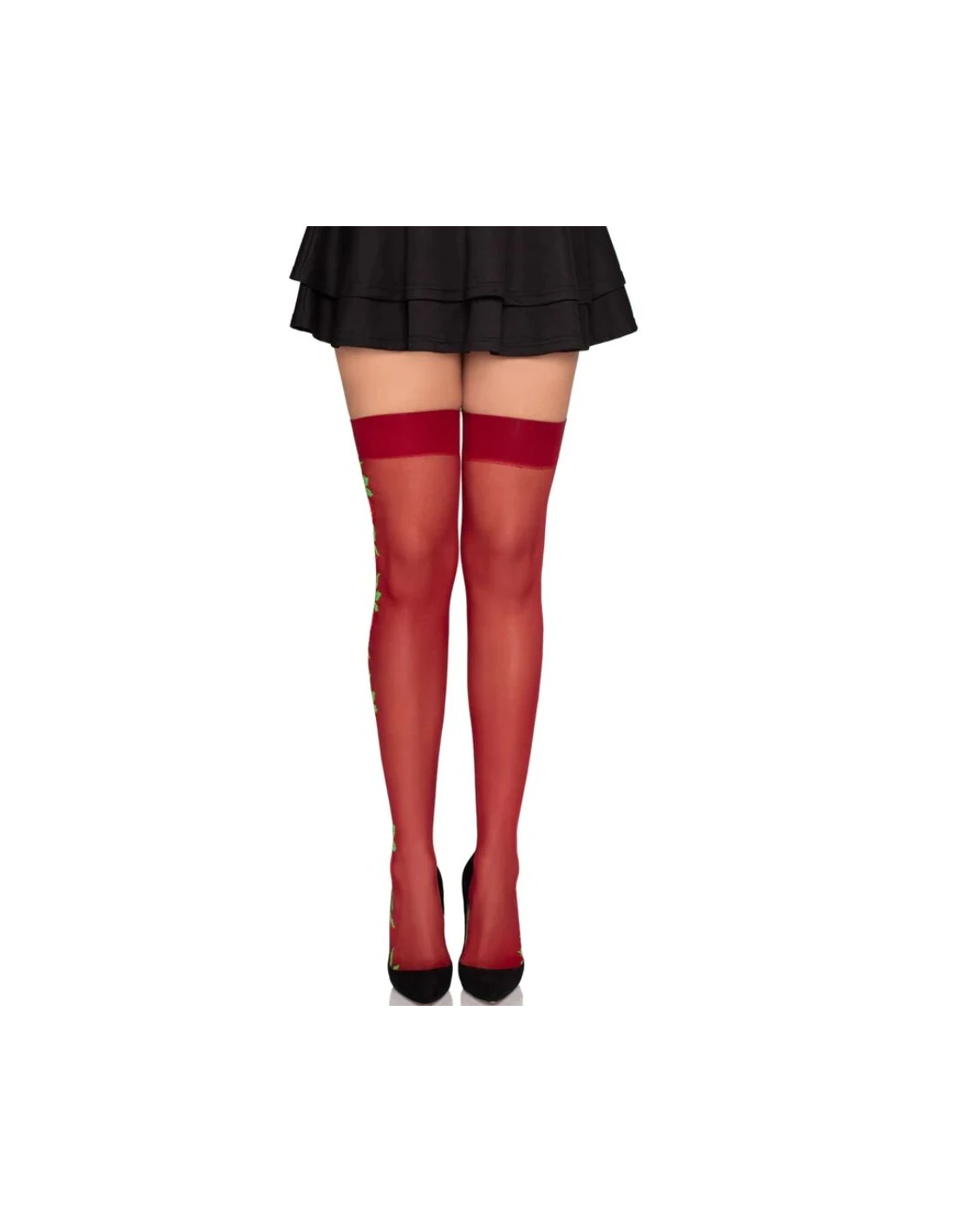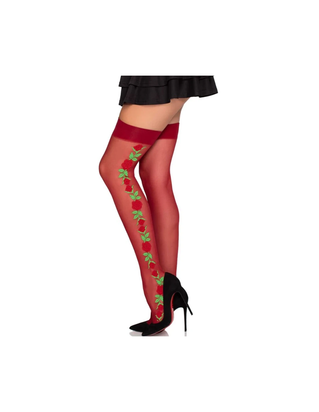LEG AVENUE - 1957 MEDIAS DE LIGUERO CON FLORES ROJAS - TALLA ÚNICA