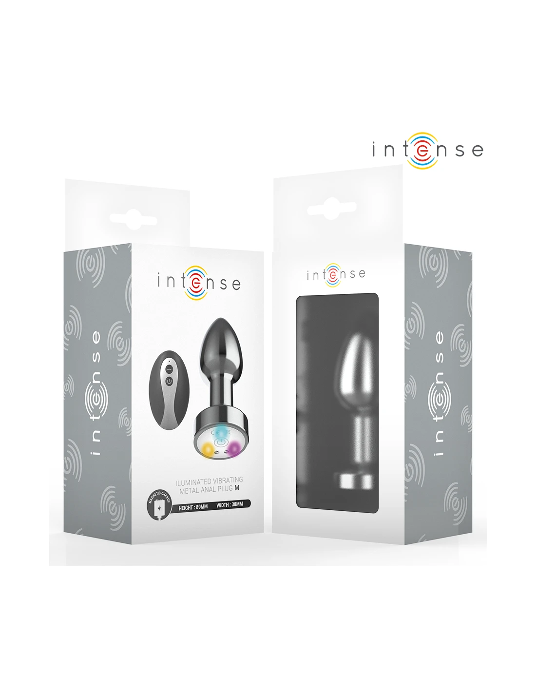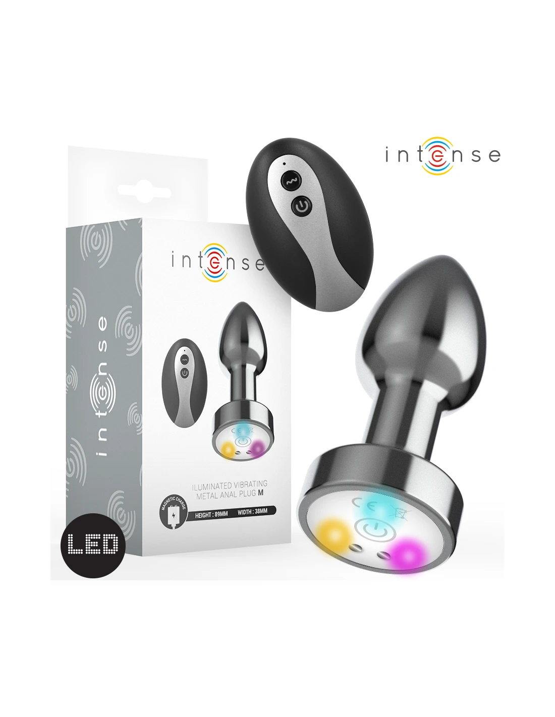 INTENSE - PLUG ANAL DE METAL VIBRADOR CON LUCES LED Y CONTROL REMOTO - TALLA M
