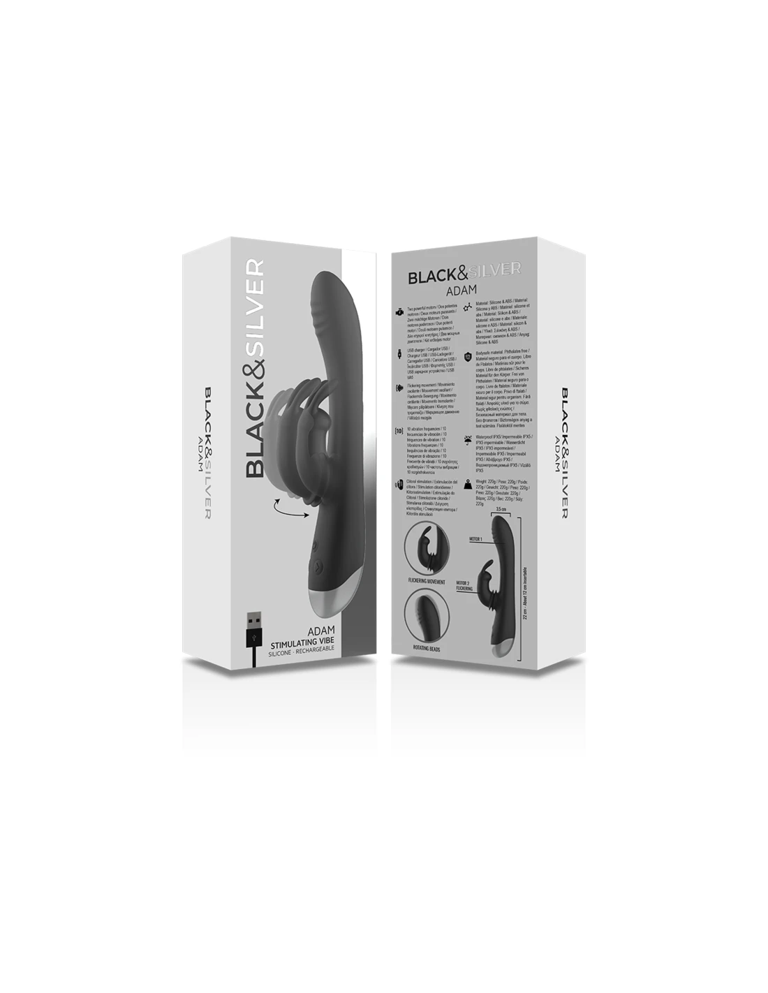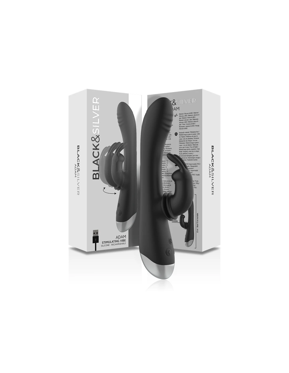 BLACK&SILVER - DJ. ADAM ESTIMULADOR RABBIT SILICONA RECARGABLE NEGRO