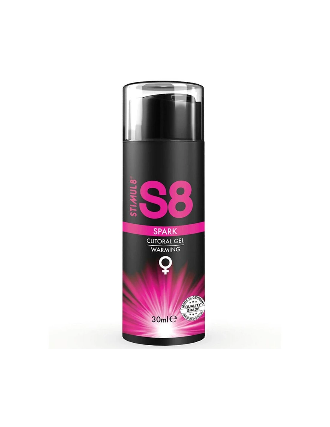 S8 Spark Gel para Clítoris: AGUA, GLICERINA, PROPILENGLICOL, ACEITE DE RICINO HIDROGENADO PEG-40, CARBÓMERO, PERFUME (FRAGANCIA), HIDROXIETILCELULOSA, TROMETANINA, METILPARABENO, ETILPARABENO, PROPILPARABENO, BUTILPARABENO, ISBUTILPARABENO, CAPSICUM FRUTESCENS RESINA, CI14720 (ROJO ALIMENTICIO 3) Gel Retardante para el Pene S8 - AGUA (AGUA, GLICERINA, PENTILENO GLICOL, LAURETH-9, CARBÓMERO, HIDRÓXIDO DE SODIO, ACEITE DE HIERBAS DE MENTHA SPICATA CRISPA)