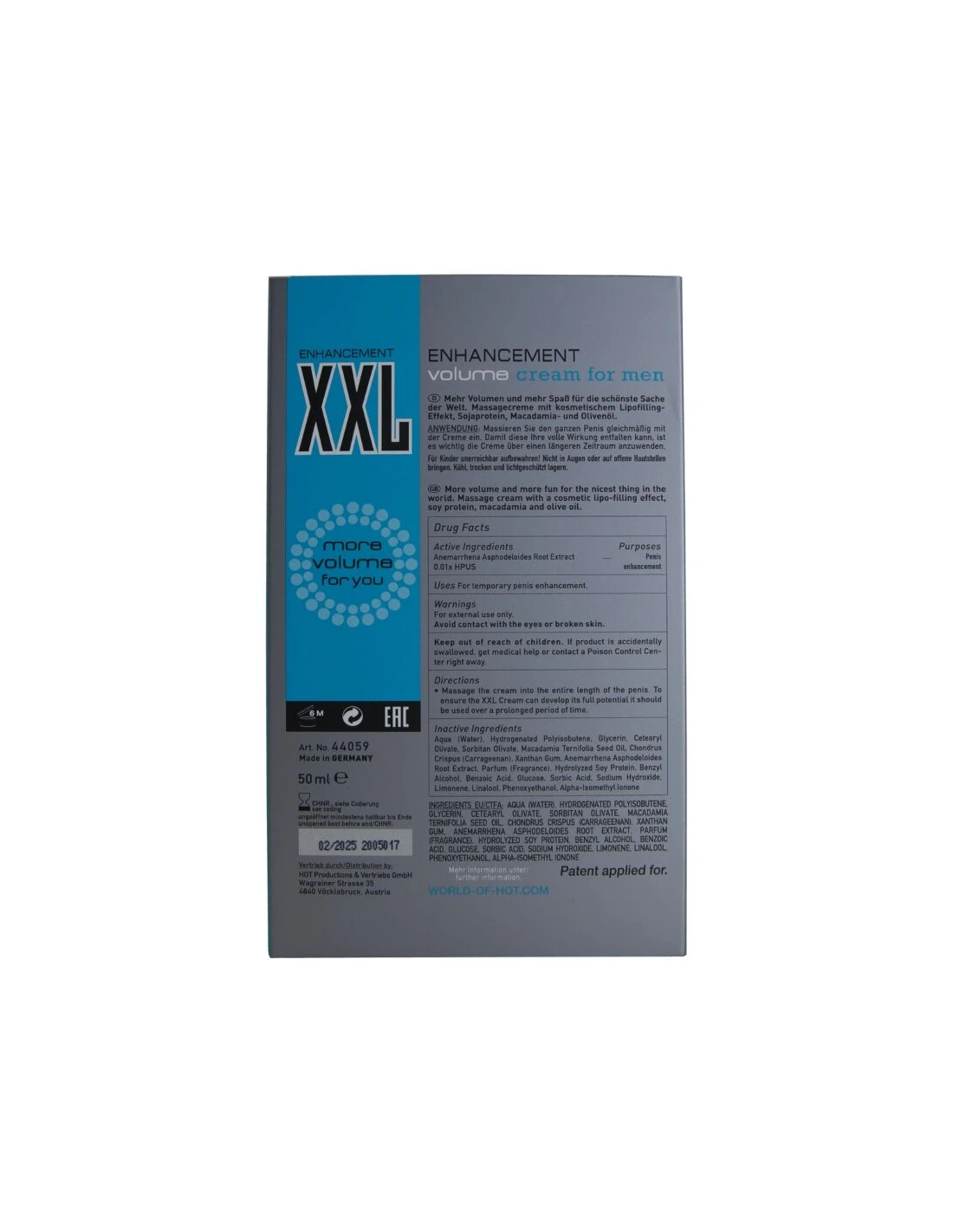 HOT - CREMA POTENCIADORA XXL PARA HOMBRE 50 ML