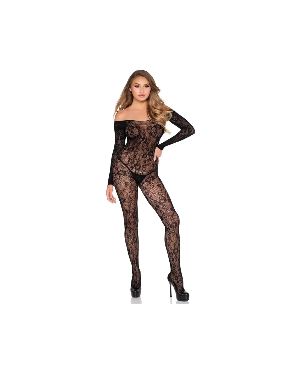 LEG AVENUE - 89366 BODYSTOCKING DE LENCERÍA DE ENCAJE NEGRO - TALLA ÚNICA