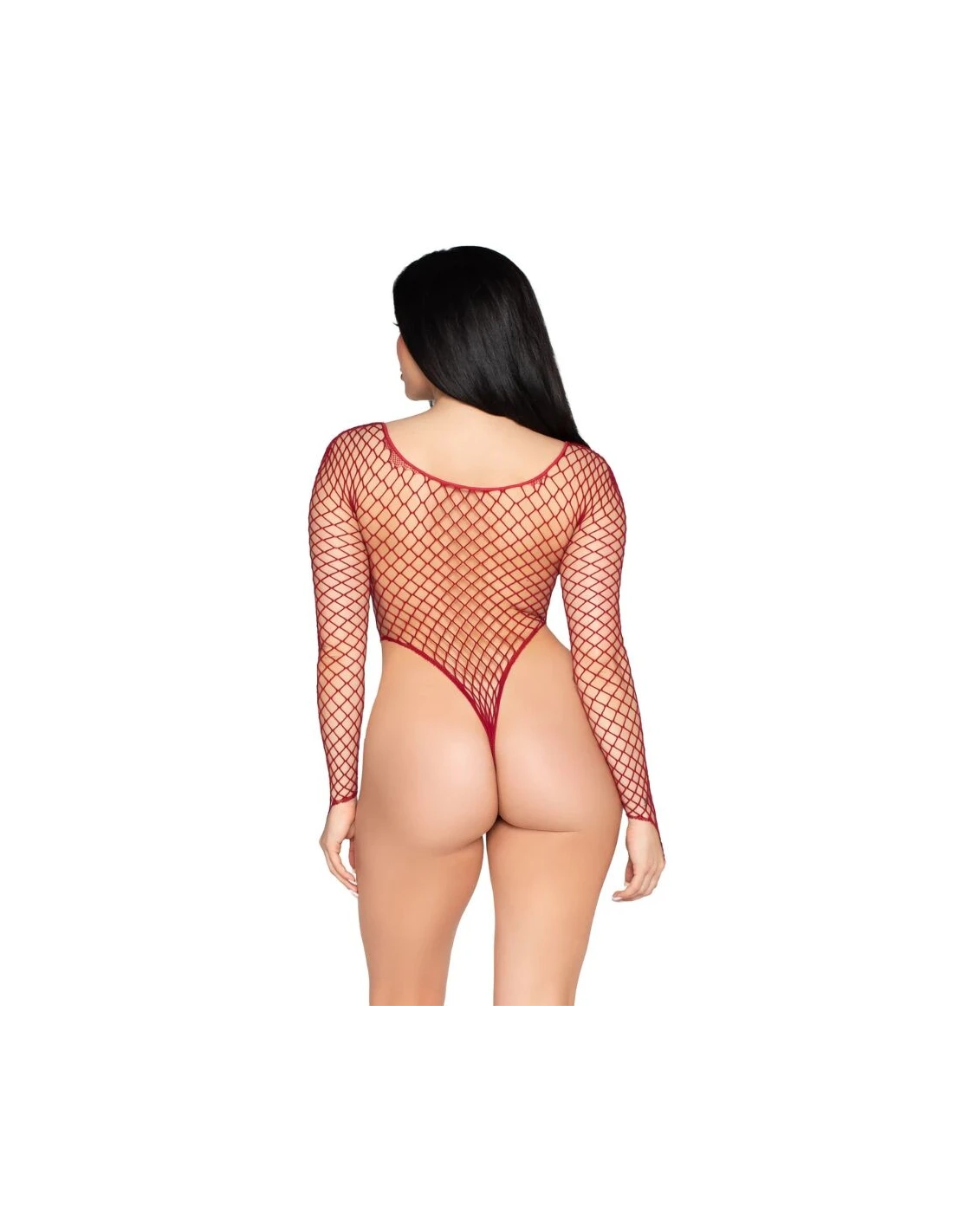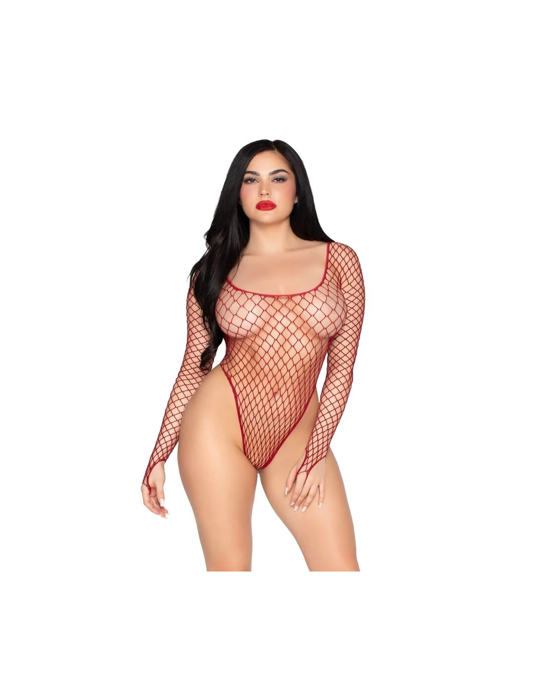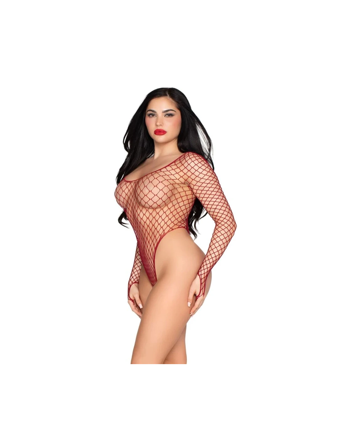 LEG AVENUE - 89377 BODYSUIT DE RED INDUSTRIAL DE CORTE ALTO ROJO - TALLA ÚNICA