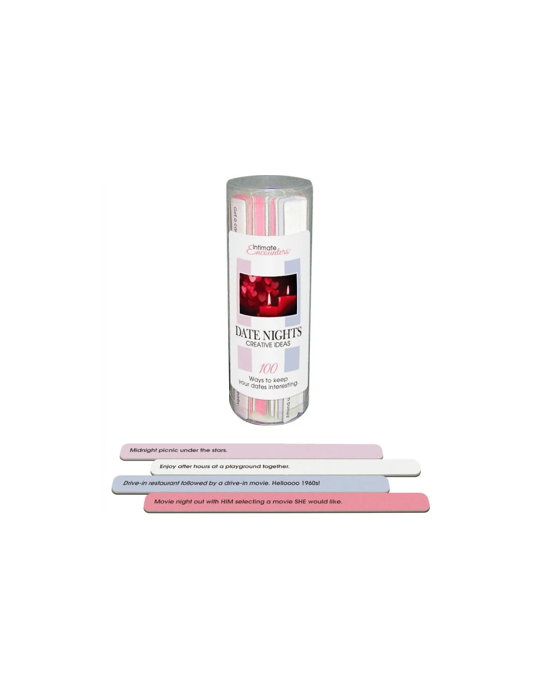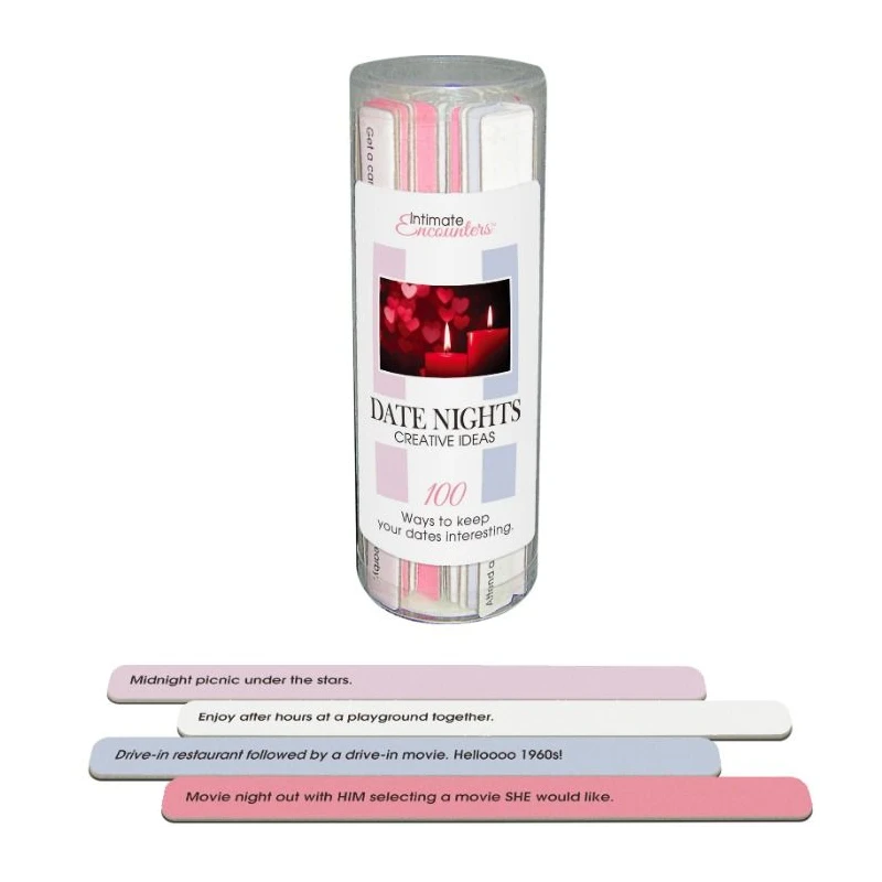 Cuando necesites una idea para una cita por la noche, selecciona una idea de uno de los sticks. Lee ambos lados y elige el que prefieras.