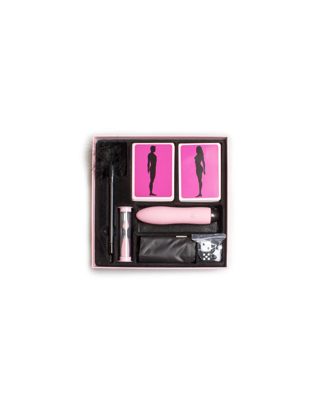 ppEL JUEGO PERFECTO PARA ENCENDER LA PASION ppEl juego contiene pulli176 tarjetas de prueba 88 tarjetas para el 88 tarjetas para ella lili1 Tablero lili2 Fichas lili2 Dados lili1 Vibrador lili1 Plumero lili1 Cinta de raso lili1 Reloj de arenapReglas del juego Primero se elige la bebida que cada jugador va a beber durante el transcurso de la partida El juego consta de 88 tarjetas para cada jugador divididas en 4 colores distintos segun la intensidad de las pruebas las cuales se han de utilizar de acuerdo con la secuencia de colores en el tablero El chico utilizara las tarjetas identificadas con SILUETA HOMBRE y la chica utilizara las tarjetas identificadas con SILUETA MUJER Una vez acabada la prueba indicada en la tarjeta escogida se ha de poner en la parte de abajo del monton ppLos diferentes articulos que vienen con el juego se han de utilizar cuando la prueba los requiera ppDurante el transcurso del juego y en todas las pruebas en las cuales se pierdan prendas estas seran elegidas siempre por el rival y han de ser prendas visibles ej No vale elegir prendas de ropa interior si no se han perdido previamente los pantalones o la falda ppAl caer en la casilla con el dibujo de una copa has de tomar un trago de tu bebida besar a tu pareja e inmediatamente coger una tarjeta para proceder con la siguiente prueba Si a la persona que juega se le olvida besar a su pareja y el otro jugador se lo recuerda el que ha caido en la casilla perdera una prenda que previamente sera elegida por su rival ppSi los dos jugadores coinciden en la misma casilla se tienen que besar inmediatamente pero el ultimo en darse cuenta perdera una prenda previamente escogida por su rival En las tarjetas donde aparezca XXX se debe utilizar el reloj de arena 60 segundos para cronometrar la prueba indicada Una vez este todo listo se dara la vuelta al reloj y se empezara la prueba ppPara entrar en las casillas de las posiciones no se requiere un numero exacto en el dado Una vez uno de los jugadores ha llegado a esas casillas simplemente se puede esperar a que el otro jugador llegue y asi juntos poder comenzar ppEn las casillas con los dibujos de las posiciones las cuales estan divididas en dos columnas cada uno ha de avanzar por la suya El dibujo indica la posicion que cada uno ha de adoptar para hacer el amor con su pareja ppCada postura se ha de practicar utilizando el reloj de arena para cronometrar Una vez terminado el tiempo cada jugador volvera a tirar los dados para practicar la siguiente posicion ppEl jugador que decida continuar por mas tiempo del que marque el reloj o el jugador que llegue antes al orgasmo sera el perdedor ppComienzo del juego Cada jugador debe lanzar el dado y el que obtenga el numero mas alto comienza En caso de empate comenzara el que antes se quite una prenda de ropa El jugador que empiece avanzara tantas casillas como numero indicado por el dado comenzando desde la casilla de salida indicada con una flecha y se avanzara en la misma direccion que las agujas del reloj ppSE RECOMIENDA TENER pulliUna bebida fria liliCubitos de hielo liliPintalabios liliVibrador liliAceite de masaje y lubricante liliNata u otro alimento comestible liliGanas de disfrutar y mucha pasionp