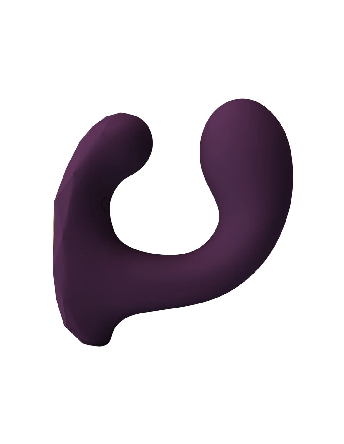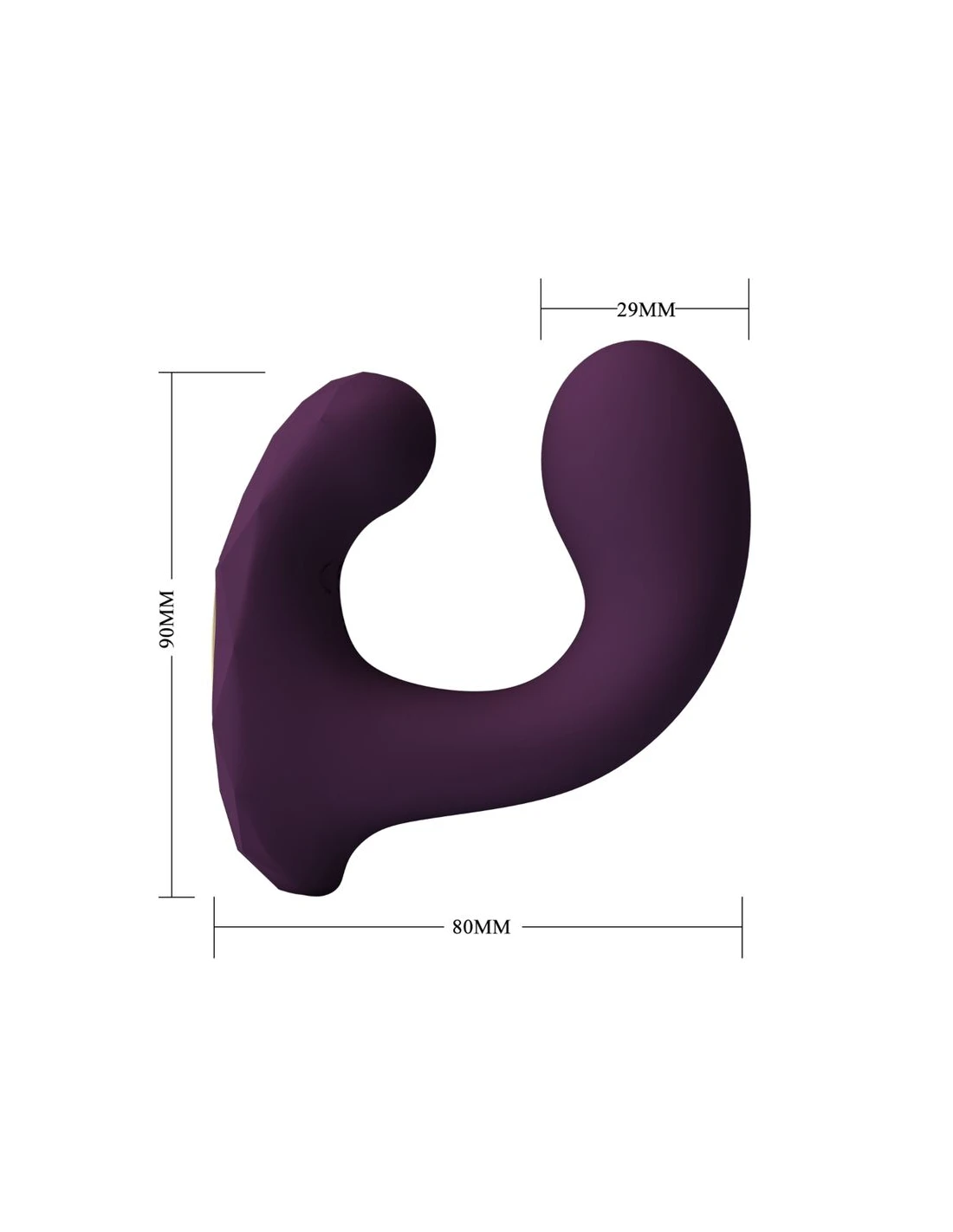 Este vibrador en forma de C tiene motores duales y se ubica dentro de la vagina para proporcionar estimulación dual a su punto G y clítoris mientras vibra en 12 patrones tentadores.