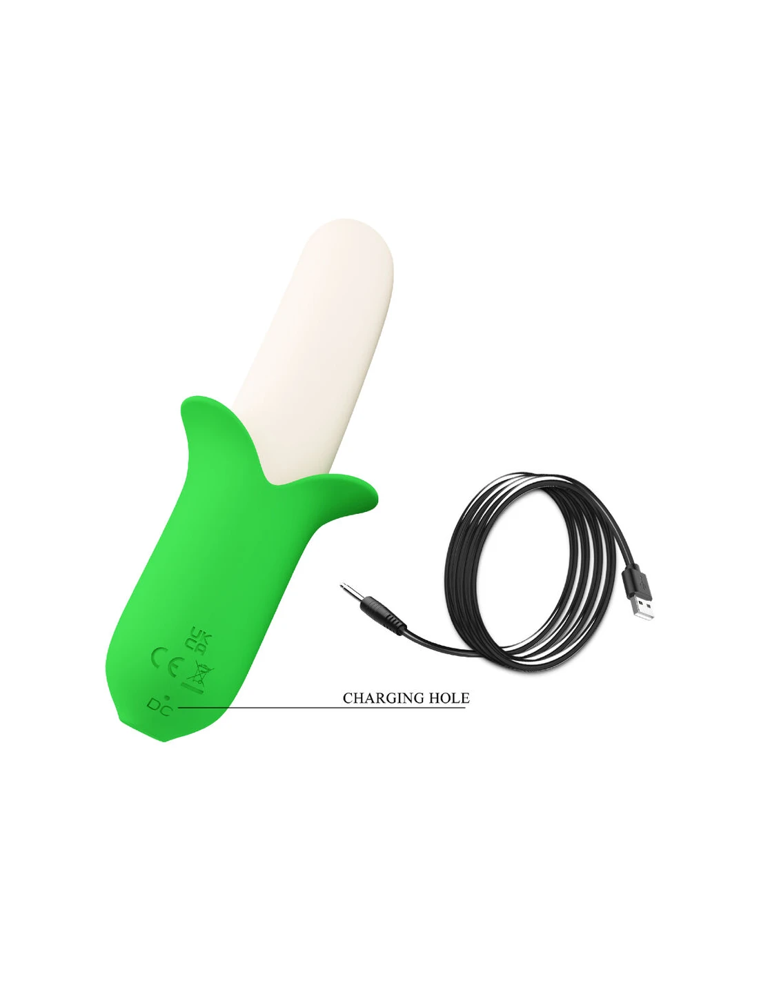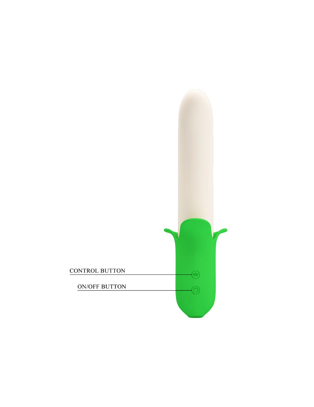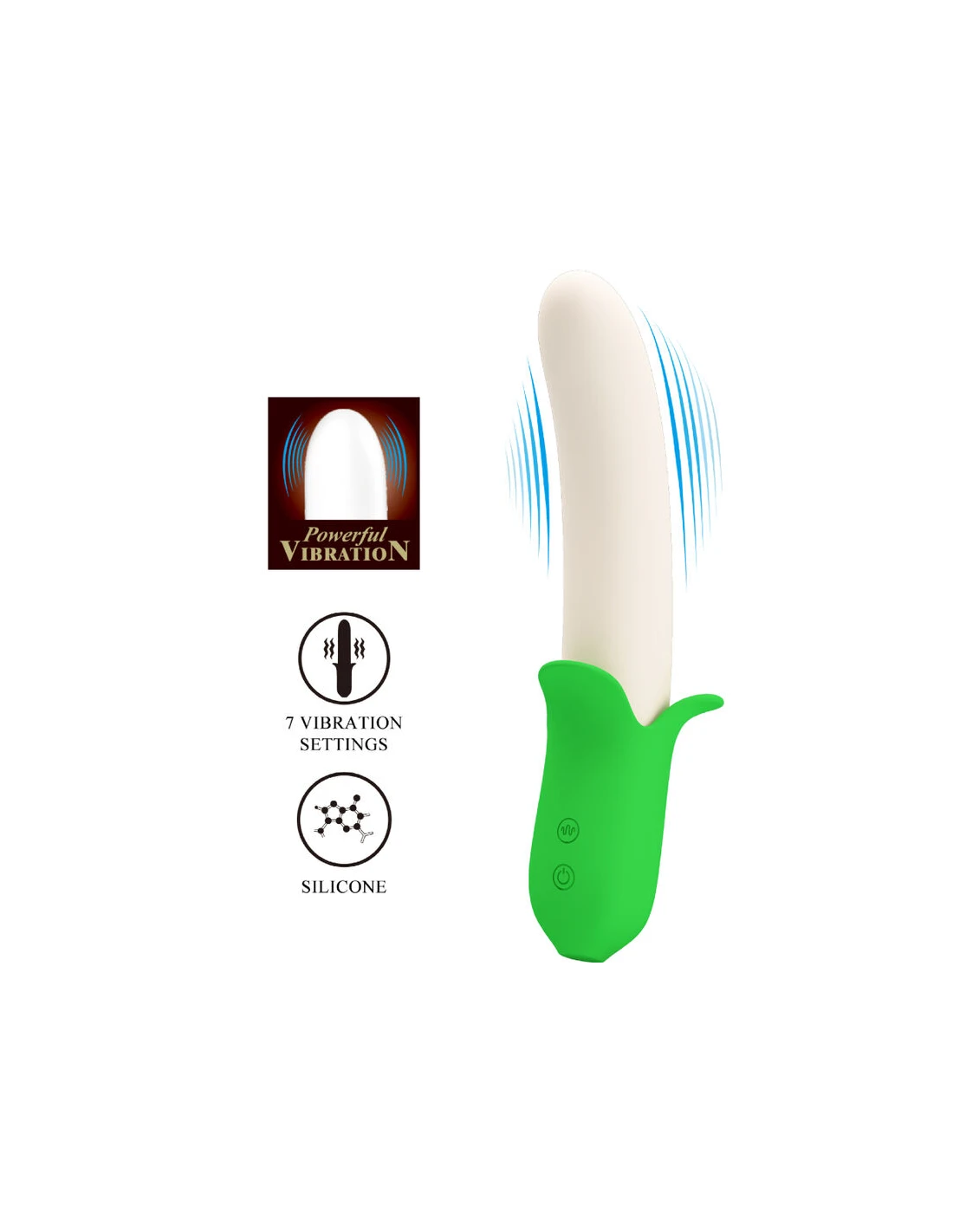 ¡Una fuente saludable de orgasmos, el vibrador de silicona Banana Knight de Pretty Love tiene que ver con la diversión para sentirse bien! Para un poderoso placer en el clítoris y la vagina, con siete modos de vibración satisfactorios, este lindo vibrador proporciona toda la nutrición traviesa que necesitas. Con una llovizna de lubricante a base de agua, el cuerpo ancho y curvilíneo de Banana Knight enfoca sus fuertes vibraciones para una estimulación intensificada, directamente en tu punto ideal. Hecho de silicona sedosa para un deslizamiento sensacional, también es muy fácil de mantener limpio y es recargable por USB.