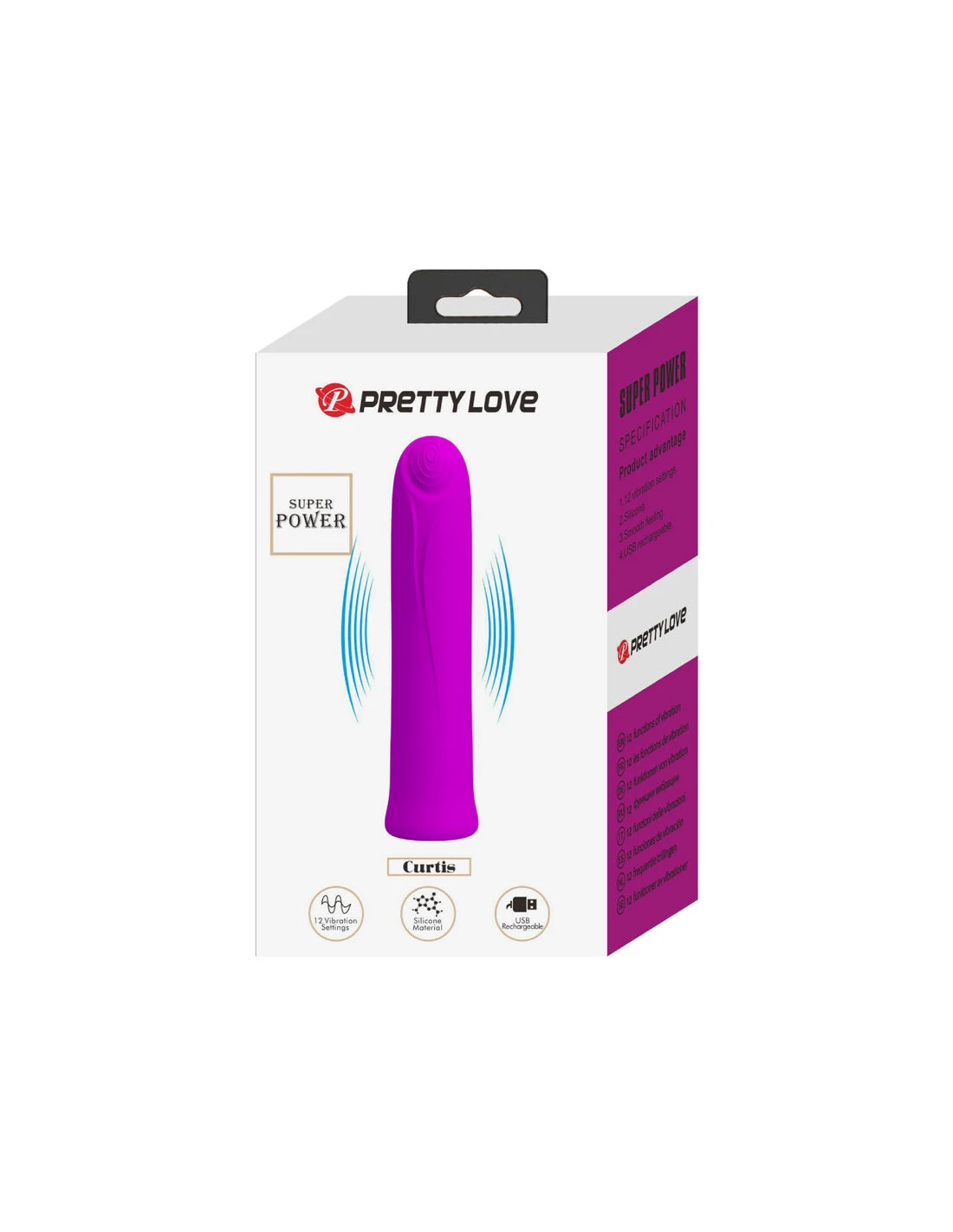 PRETTY LOVE - CURTIS MINI VIBRADOR SUPER POWER 12 VIBRACIONES SILICONA VIOLETA