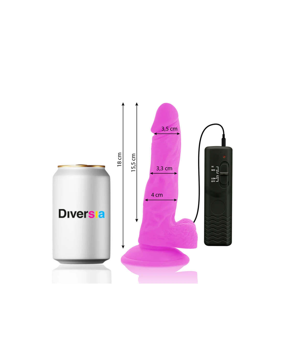 DIVERSIA - DILDO REALÍSTICO FLEXIBLE CON VIBRACIÓN LILA 18 CM -O- 4 CM