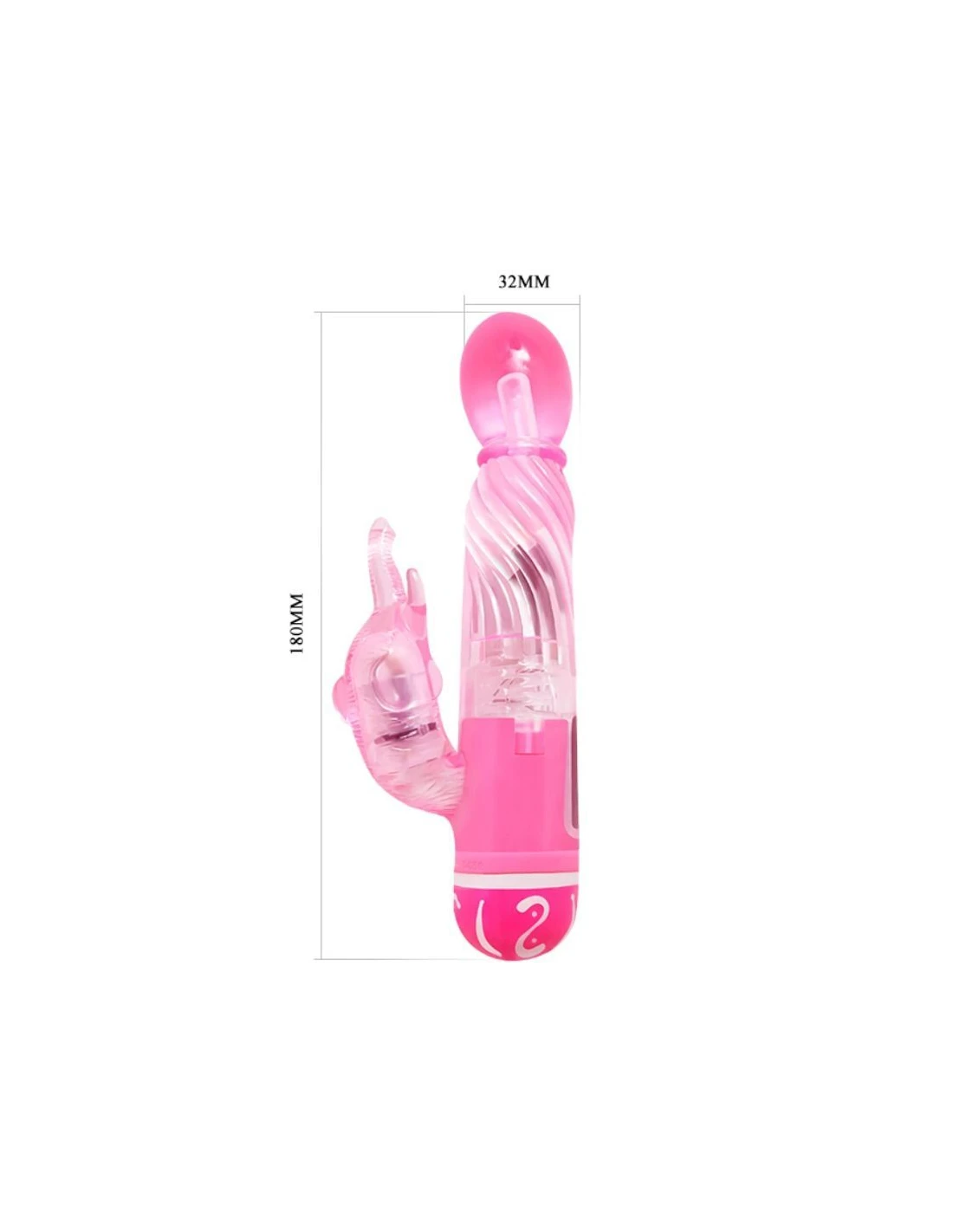 Este increíble vibrador con estimulador de clítoris de conejo tiene diseño peculiar e impecable para tu satisfacción. Su eje texturado y el glande redondeado aseguran una penetración perfecta, mientras que el potente estimulador en forma de conejo se encarga de su clítoris.