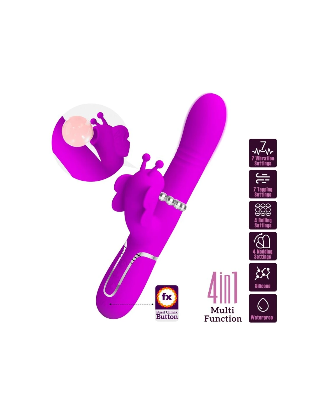 PRETTY LOVE - VIBRADOR RABBIT MULTIFUNCIÓN 4 EN 1 MARIPOSA FUCSIA