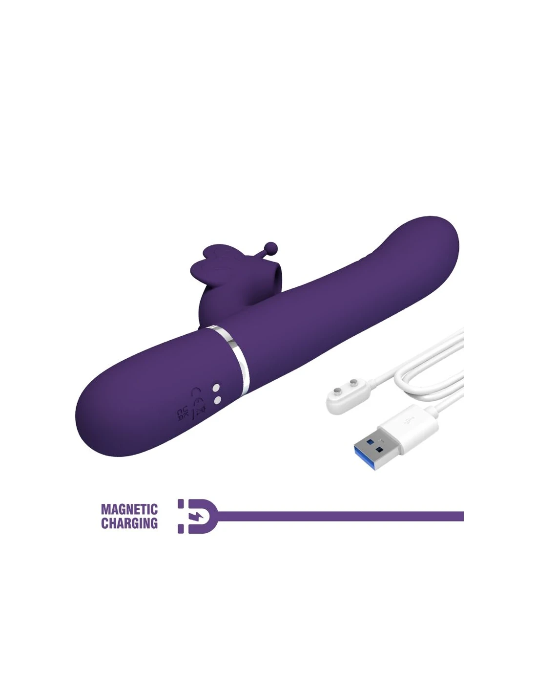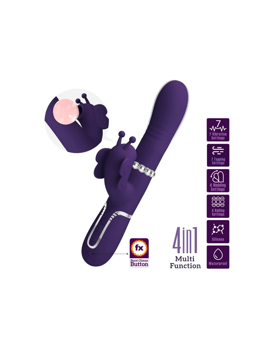 PRETTY LOVE - VIBRADOR RABBIT MULTIFUNCIÓN 4 EN 1 MARIPOSA MORADO