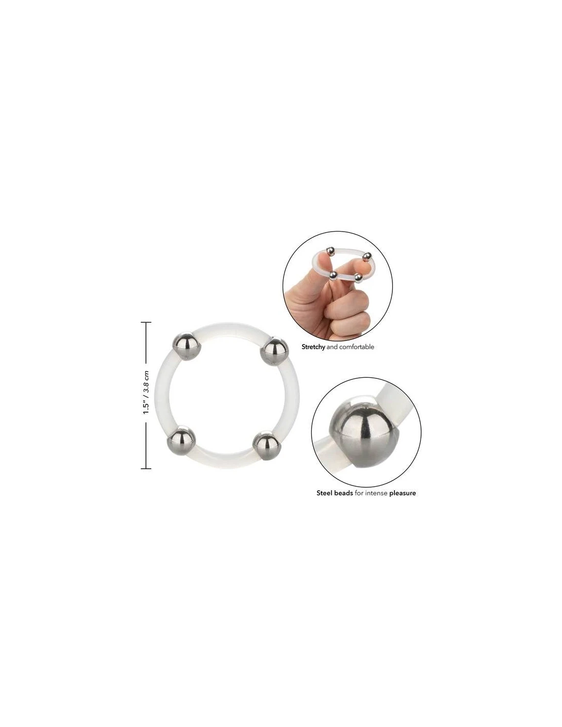 Diseñado para mejorar, intensificar e intensificar el éxtasis cada vez que te pones el anillo de silicona con cuentas de acero grande.